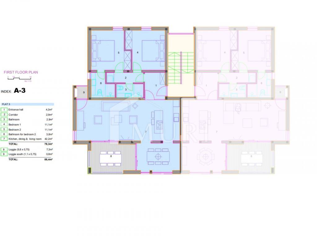 Dodatni komfor: Glavna kupaonica od 2,9 m², ulazni i unutarnji hodnici (ukupno 7,2 m²) te dodatna lođa od 1,1 m².