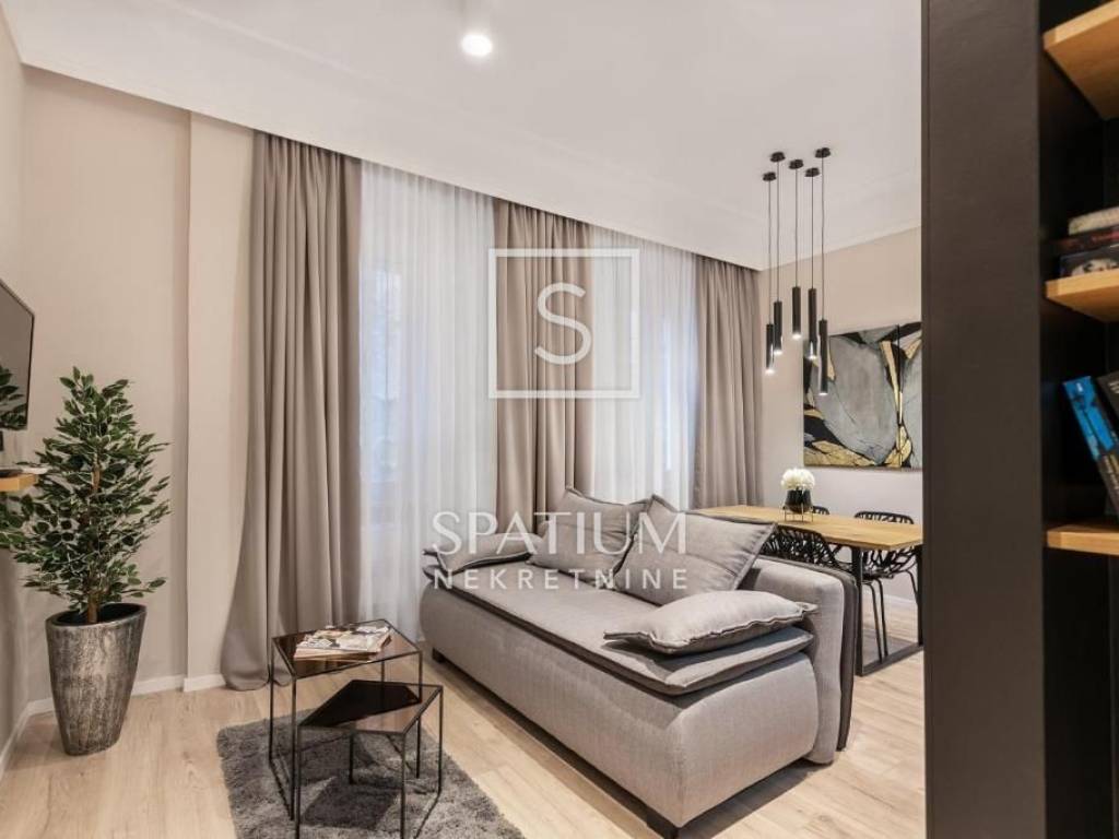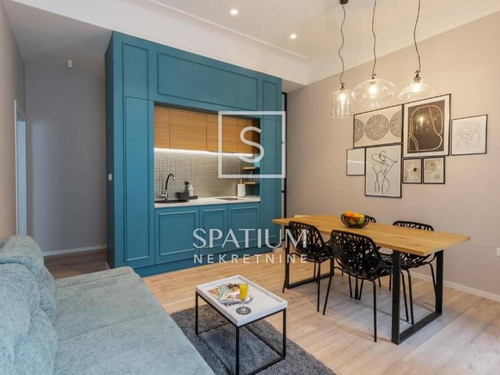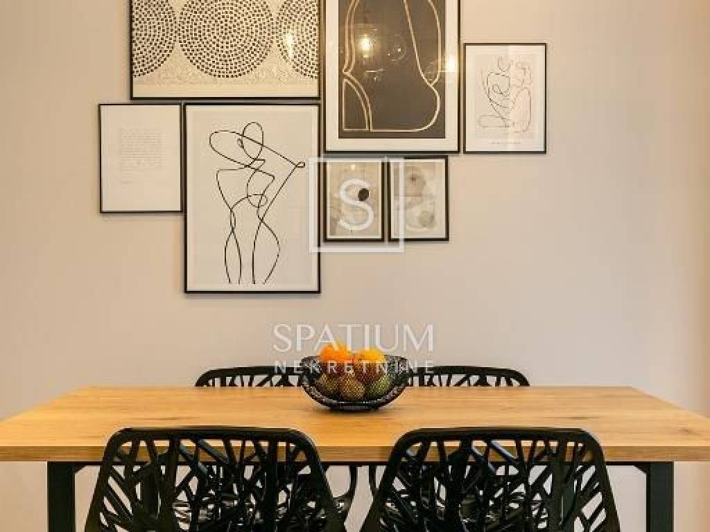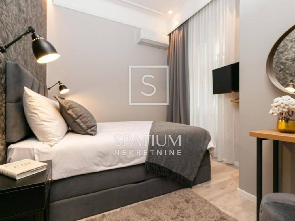 Stan se daje u dugoročni najam poslovnim subjektima uz potpisivanje ugovora. Prostran i kompletno namješten, smješten je u centru grada u blizini svih sadržaja. Koncipiran je kao dva apartmana te tri sobe. Interijer je pažljivo dizajniran i opremljen kako bi pružio udobnost i estetiku. Stan se nalazi na drugom katu stambene zgrade. Ima dva odvojena dijela koji funkcioniraju kao zasebni apartmani. Svaki apartman ima vlastiti dnevni boravak, kuhinju, kupaonicu i spavaću sobu. Interijer je vrhunski opremljen i kvalitetno namješten. Kuhinje su potpuno opremljene svim aparatima i posuđem. Uz dva apartmana, stan ima tri odvojene sobe. Sve sobe su osvijetljene prirodnim svjetlom i imaju klimu. Sastoji se od 5 bračnih kreveta i 2 kauča na razvlačenje i na takav način može boraviti maksimalno 14 ljudi.