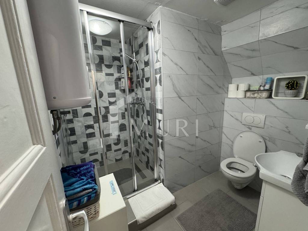 U prizemlju se nalazi jednosoban apartman koji obuhvaća spavaću sobu, kuhinju i kupaonicu, dok se na prvom katu i u potkrovlju prostire prostrani dvosobni apartman s kuhinjom, dnevnim boravkom i blagovaonicom. Svaki prostor je funkcionalan, svijetao i spreman za trenutačni najam – nekretnina se prodaje potpuno namještena, što znači da možete odmah preuzeti postojeće poslovanje i prihod.