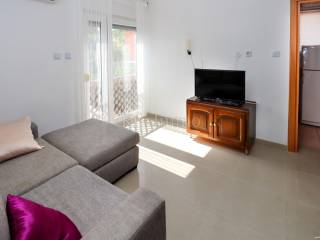 Apartman u prizemlju ima površinu od 45,50 m2 i sastoji se od hodnika, kupaonice, spavaće sobe te otvorenog dnevnog prostora s opremljenom kuhinjom, dnevnim boravkom i blagovaonicom.