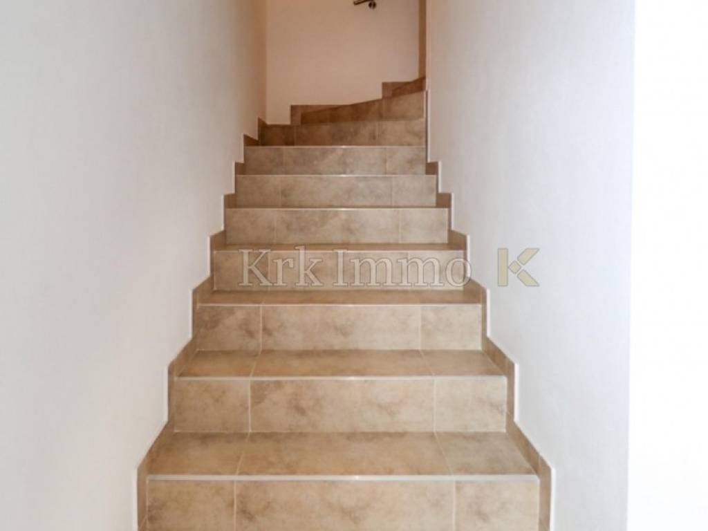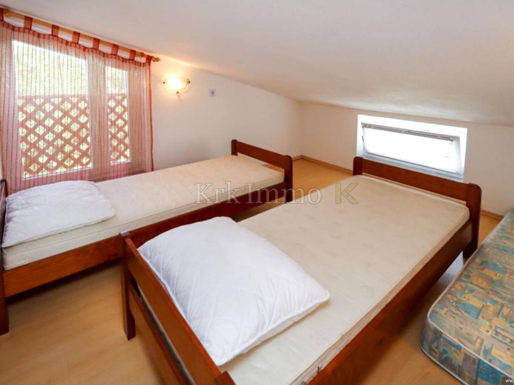 Prodaje se dvojna kuća u mirnoj okolici Malinske, ukupne površine 131 m2, raspoređena na tri etaže s tri apartmana, svaki na jednoj etaži, povezani unutarnjim stepeništem.