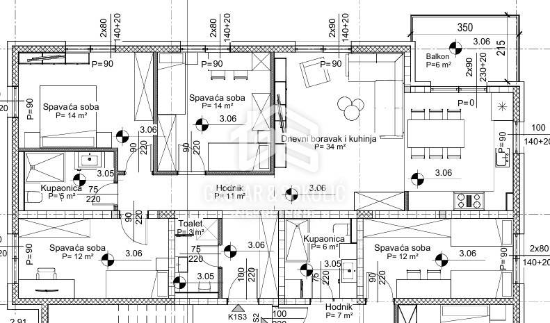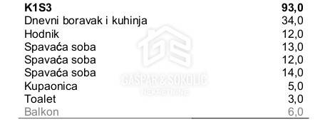 Stan se sastoji od prostranog dnevnog boravka povezanog s kuhinjom i blagovaonicom, tri spavaće sobe, moderno uređene kupaonice, odvojenog WC-a te balkona od 6 m², idealnog za opuštanje i uživanje na otvorenom.