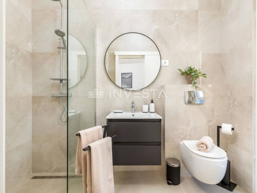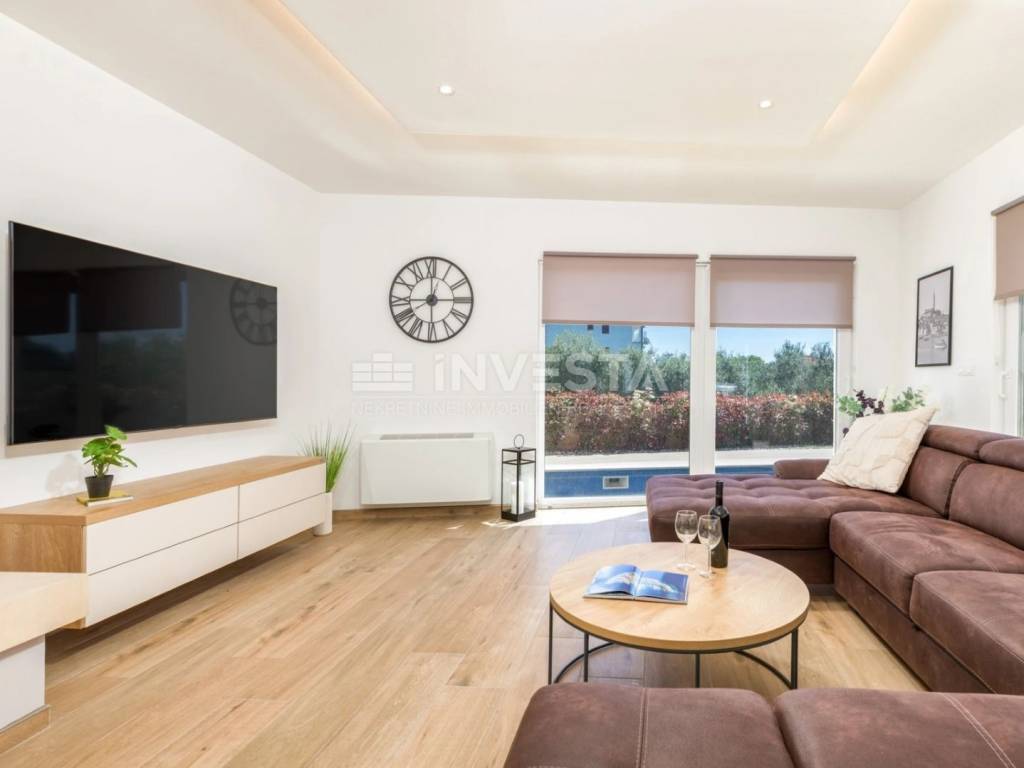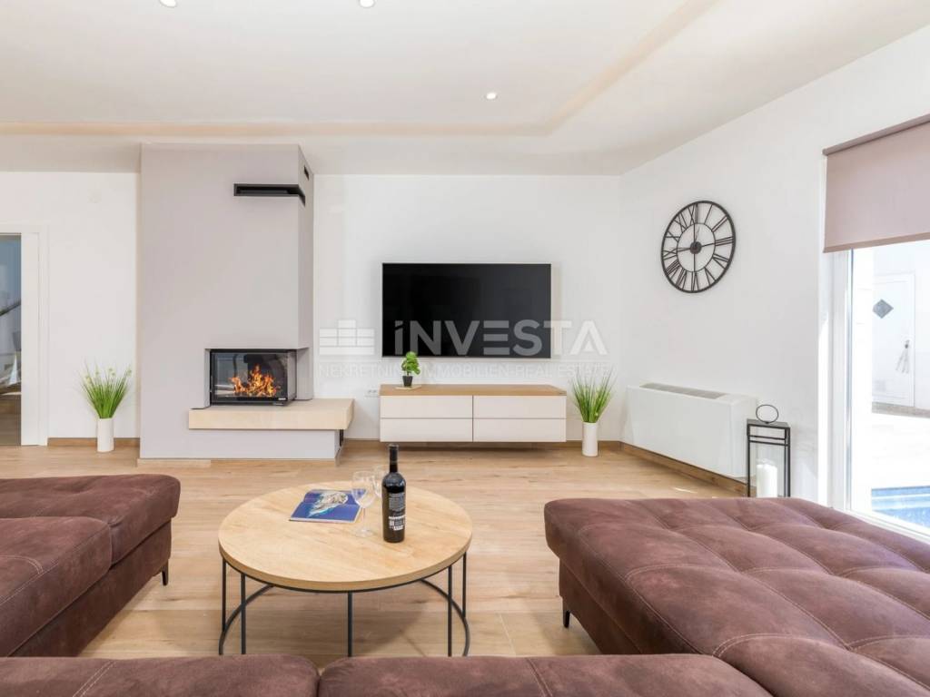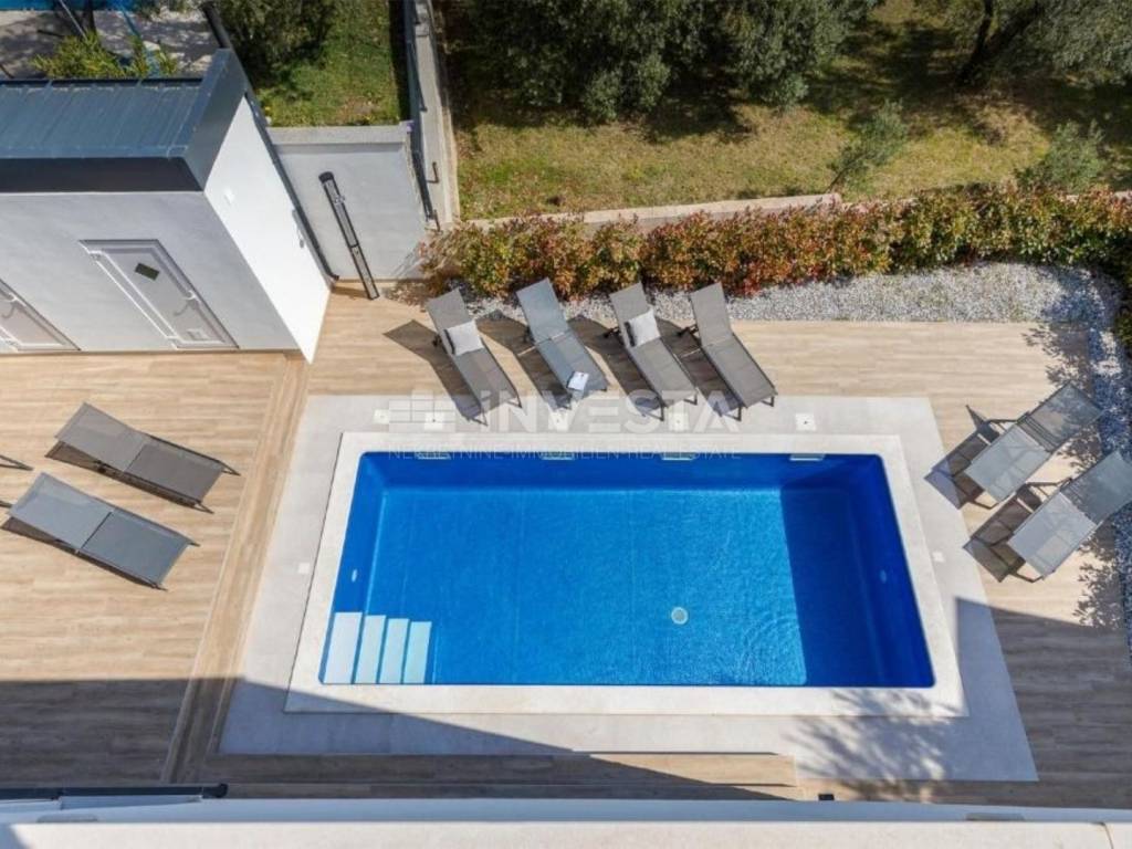 Uz prostrane sobe i luksuzne kupaonice, vila nudi i brojne dodatne sadržaje poput bazena, ljetne kuhinje, fitness sobe i saune. Okućnica je pažljivo uređena s automatskim navodnjavanjem i prostranim travnjakom, čime se osigurava opuštajući ambijent za uživanje na otvorenom.