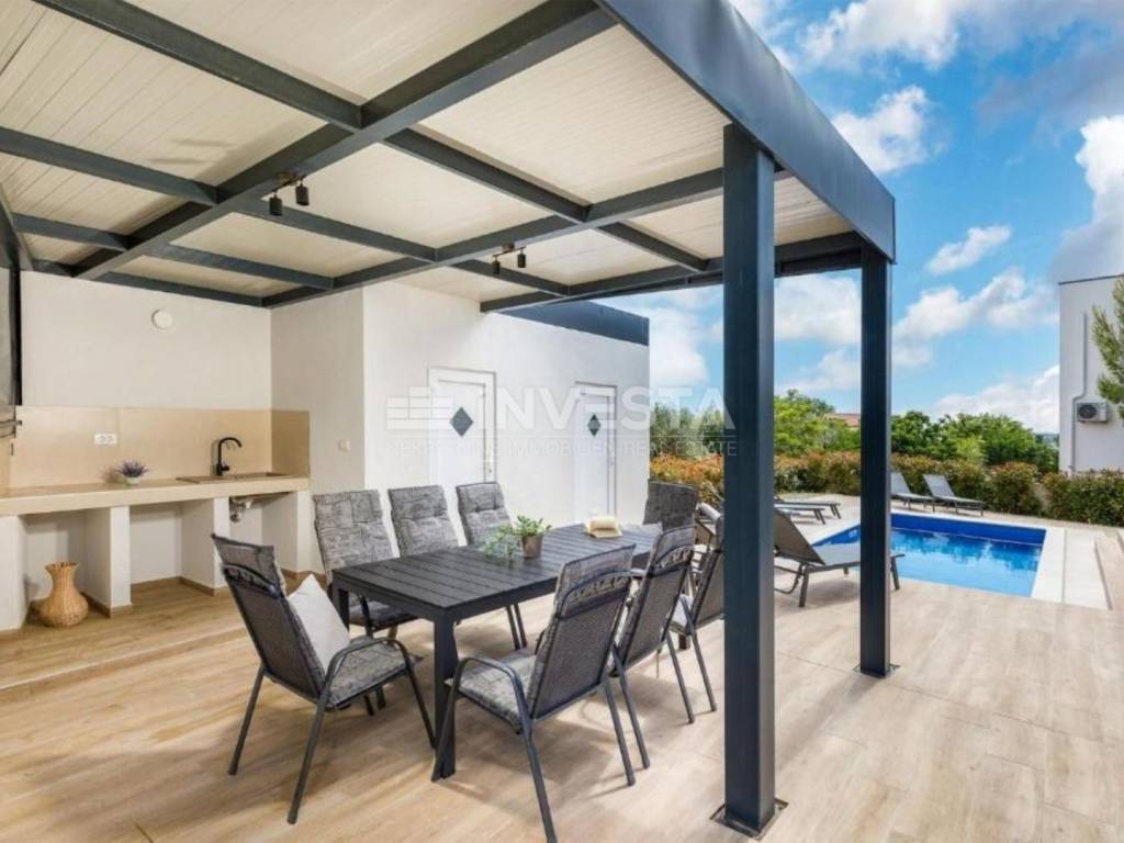 Natkrivena vanjska terasa pokraj bazena.