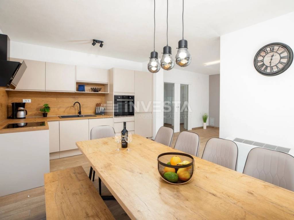 Prostrani dnevni boravak s modernom kuhinjom i blagovaonicom, idealan za obiteljska okupljanja.