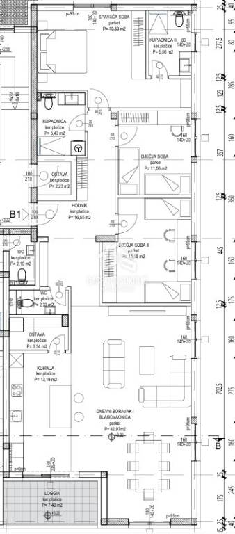 Na prodaju je prostrani stan u novogradnji u Samoboru, ukupne površine 140,86 m², smješten na prvom katu trokatnice opremljene liftom. Stan se nalazi u fazi roh-bau, što omogućuje dovršetak i useljenje u skladu s modernim standardima.