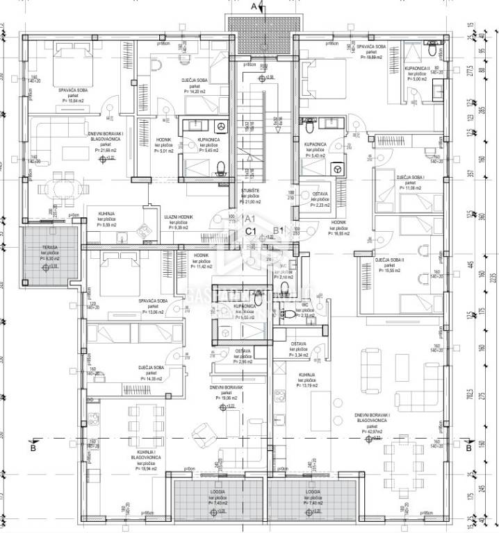 Prostorno i funkcionalno raspoređen, stan se sastoji od dnevnog boravka s blagovaonicom, kuhinje, tri spavaće sobe, dvije kupaonice, odvojenog WC-a, ostave te lođe površine 7,40 m², koja pruža dodatni prostor za opuštanje na otvorenom.