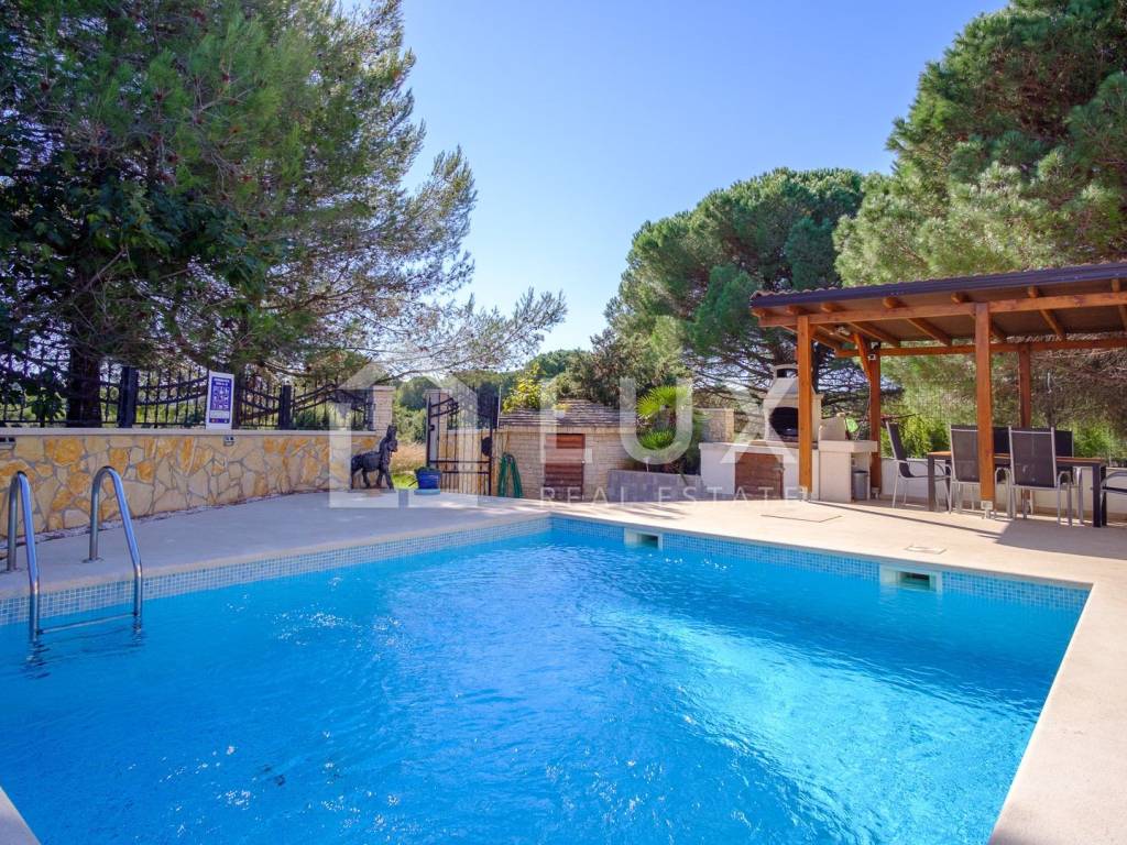 Na ograđenoj okućnici nalazi se bazen površine 25m2 sa sunčalištem, roštilj i prostor za parkiranje automobila. Najbliža plaža udaljena je samo 15 minuta hoda od nekretnine.