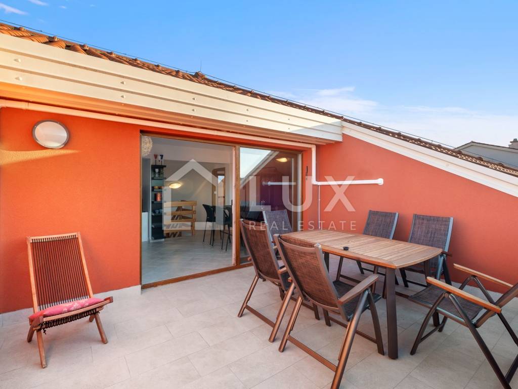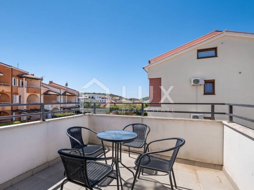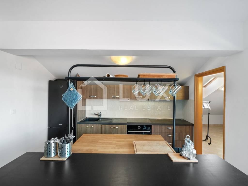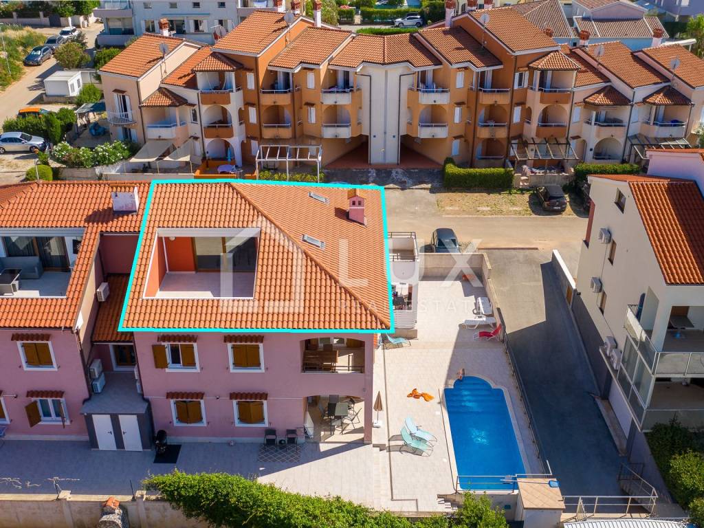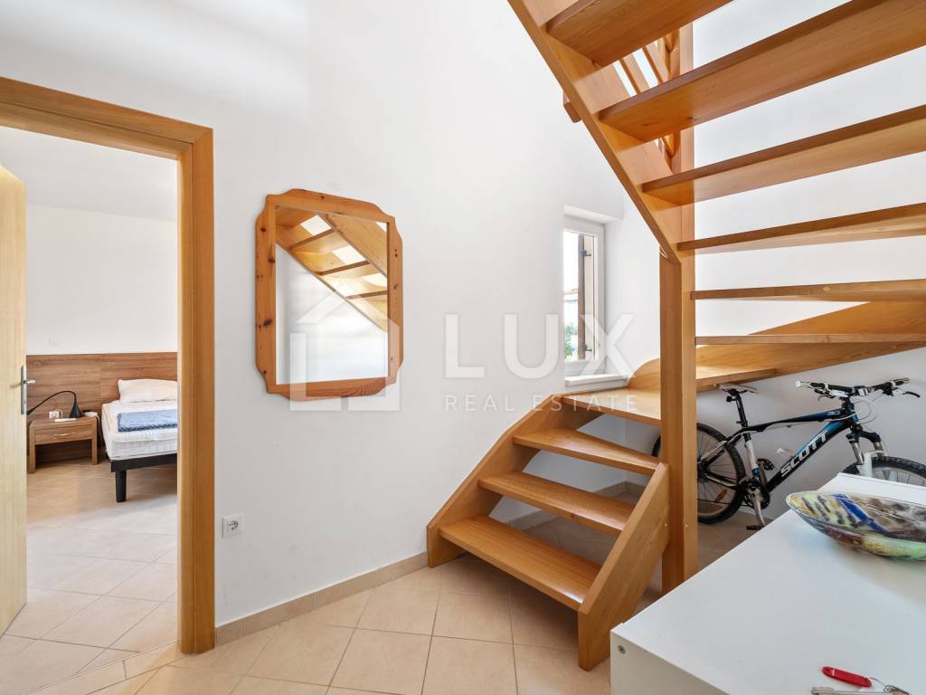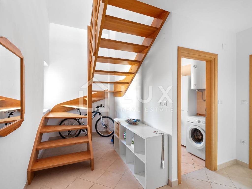 Stan se nalazi u novijoj stambenoj zgradi iz 2010. godine te posjeduje svu potrebitu dokumentaciju, proteže se kroz dvije etaže sjeverozapadne orijentacije. Nekretnina je idealna za obiteljski život ili kao investicija za turistički najam obzirom na blizinu očaravajućih plaža, vlastiti parking, zajednički vanjski bazen i nenadmašivi pogled na zalazak sunca s terase apartmana.