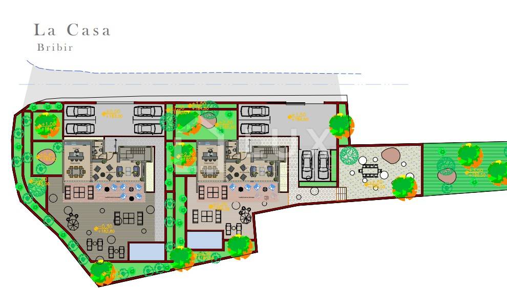 U izgradnji su predviđeni vrhunski materijali, prvoklasna keramika i sanitarije, protuprovalna vrata, podno grijanje, klimatizacijski uređaji u svim sobama, solarni paneli na krovu, elektro pokretane rolete i vrhunska PVC stolarija, alarmi sustav i sigurosne kamere.