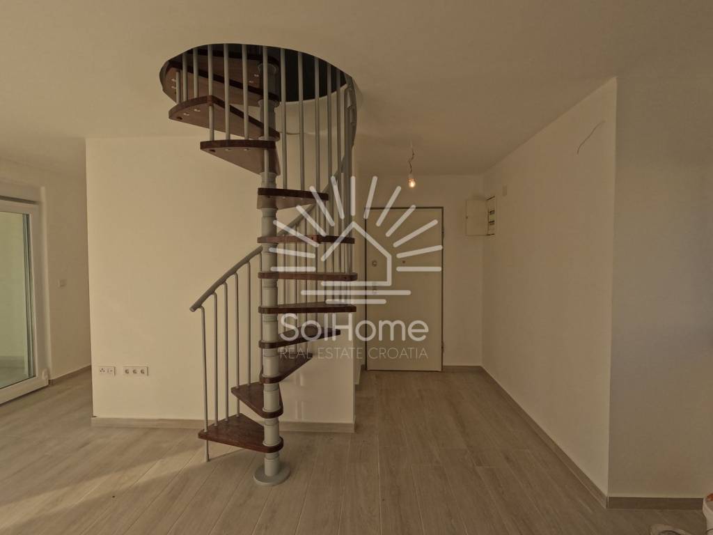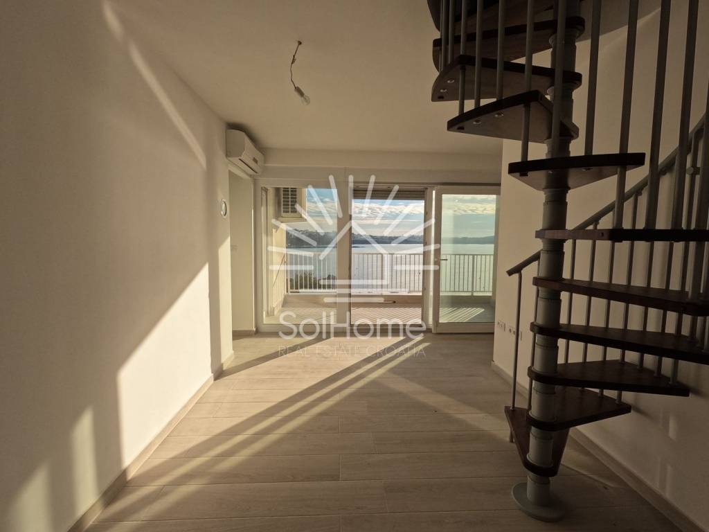 DVOETAŽNI STAN NA PRODAJU – PRVI RED DO MORA! Ovaj predivan stan nalazi se na prvom katu urbane vile s ukupno 8 stanova i pruža otvoren pogled na more.