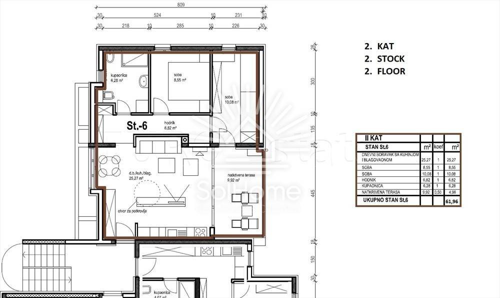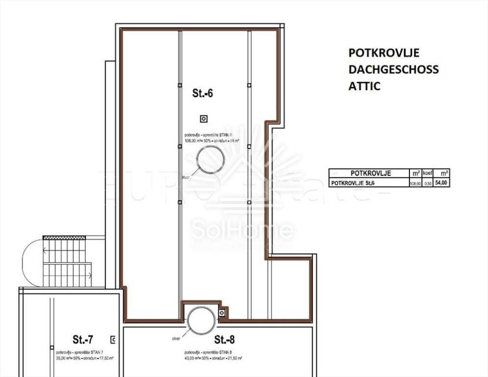 Stan se prostire na dvije etaže – nalazi se na drugom katu i u potkrovlju zgrade.