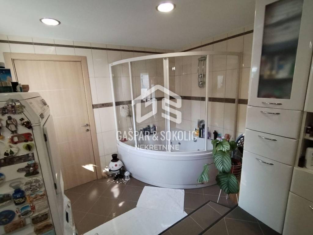 Nalazi se na prvom katu, a sastoji se od ˝open space dnevnog boravka i blagovaone˝, kuhinje, hodnika, 3 spavaće sobe, te predivne prostrane kupaonice.