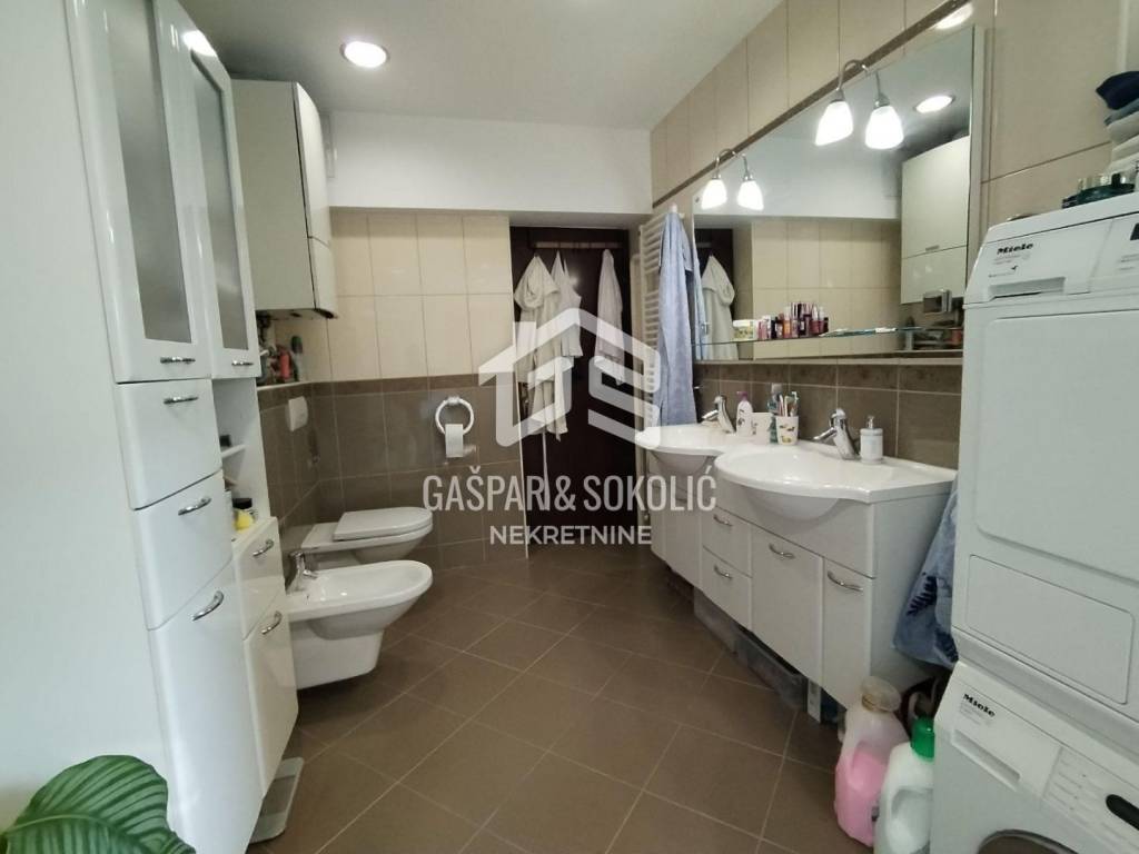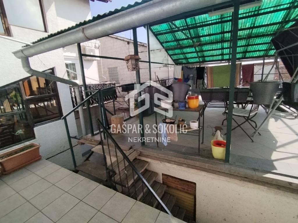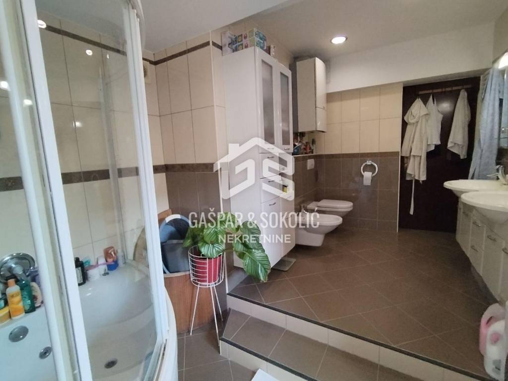 Neto površina stana je 95,7m2 dok dodatno mu pripadaju balkon od 8,7m2, balkon od 3,25m2, natkrivena terasa 42,96m2, garaža 19,33m2, 5 spremišta (površine: 6,56m2, 4,77m2, 7,87m2, 5,46m, 5,98m2), vrt od 82,77m2 i natkriveni dio dvorišta sa roštiljem/pečenjarom od 22,18m2.