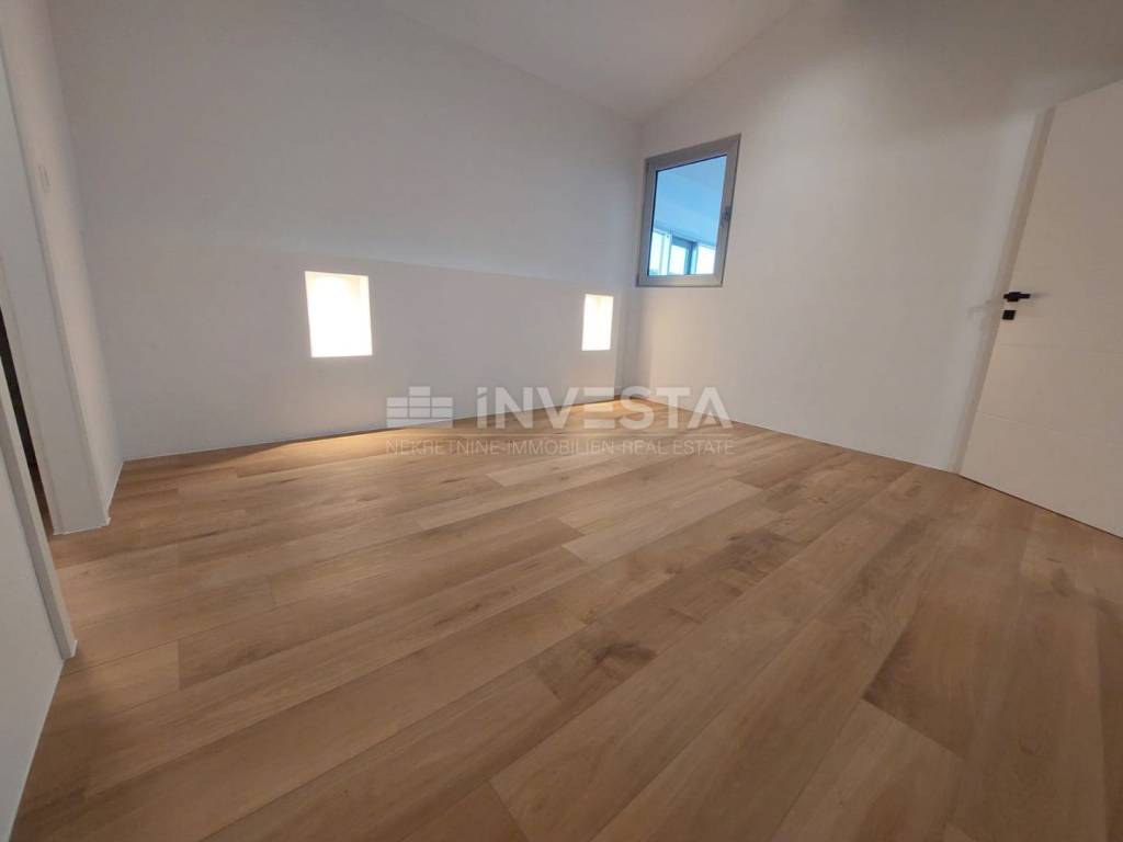 U naravi etaža na drugom katu obuhvaća četiri stana podijeljenih kvadratura 75,36m2, 82,11m2, 66,63m2, 63,53m2, a etaža na trećem katu obuhvaća jedan stan od 48m2. Zgrada je uredno održavana, stanovi se prodaju u stanju vidljivim na fotografijama odnosno s kuhinjom i kompletno opremljenom kupaonicom, postavljena su protuprovalna vrata, te za grijanje i hlađenje osigurano je putem klima uređaja ( monofazni uređaj), zgrada posjeduje lift i osigurano je parkirno mjesto.