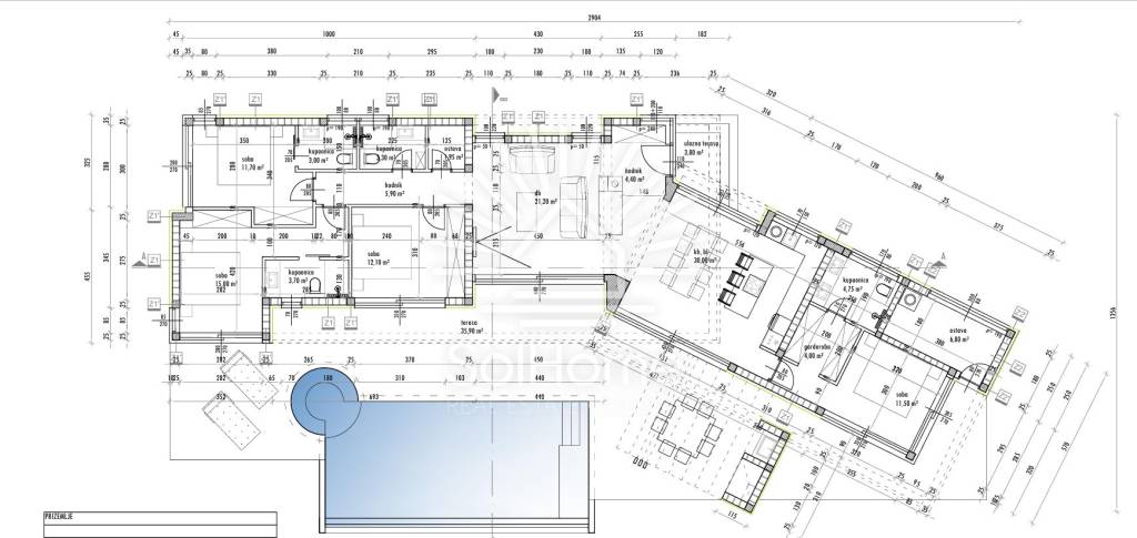 Prostrana kuhinja s blagovaonicom i dnevnim boravkom prostire se na 52 m². Osim toga, na raspolaganju su i 2 spremišta. Posebna atrakcija je velika terasa s bazenom i ugrađenim jacuzzijem – savršena za opuštanje i druženje. Roštilj zona i potpuna privatnost zaokružuju ponudu.