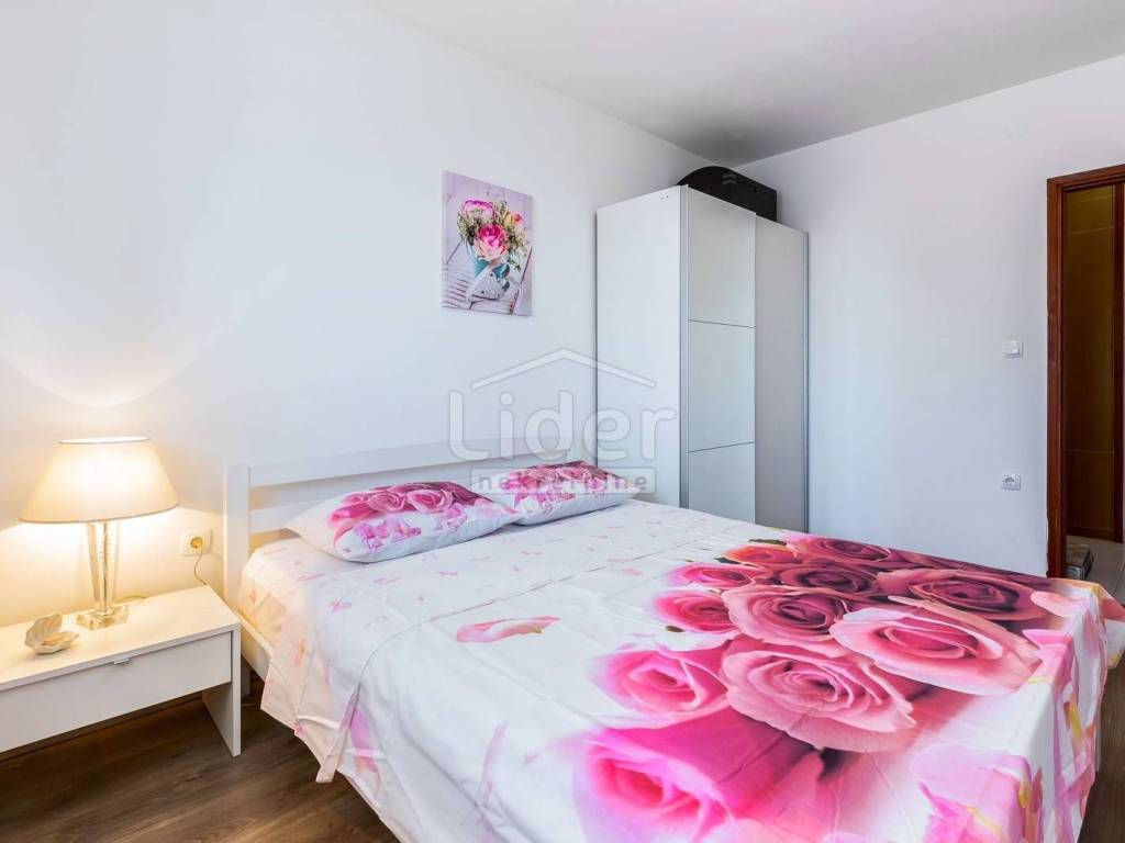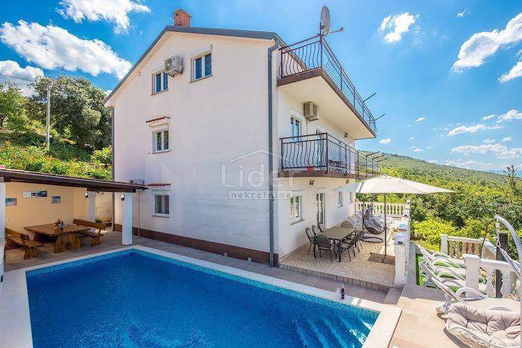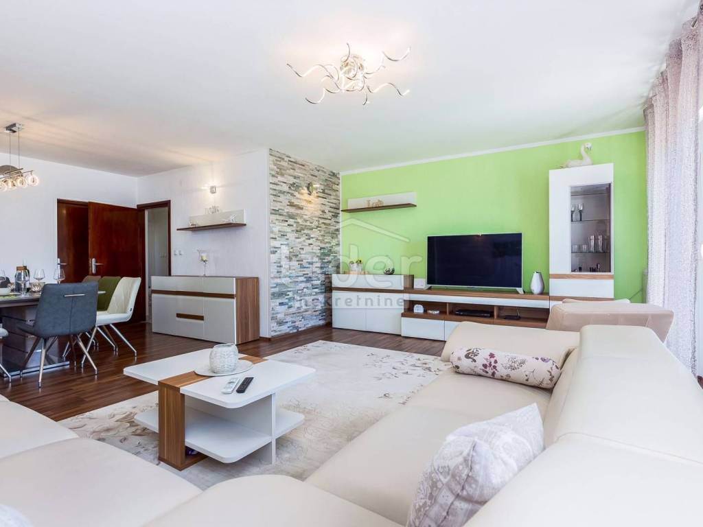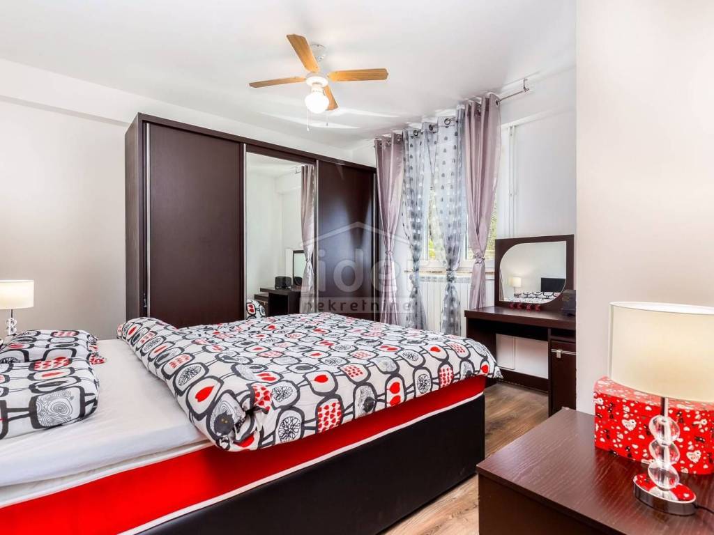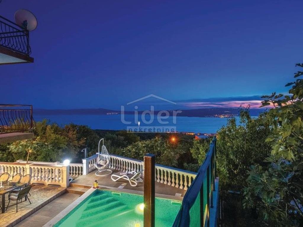 Prodajemo lijepu kuću s tri stambene jedinice, ukupne kvadrature 450m2. Kuća se nalazi na oko 2000 m od mora i centra grada i ima prekrasan pogled na more. Dva trosobna stana s dnevnim boravkom, jedan dvosoban sa dnevnim, teretana, spremište te garaža, bazen od 34m2 i okućnica od 650m2, čine ovu nekretninu idealnom za stalan boravak ili kao turističku nekretninu. Ovaj objekat je registriran kao kuća za odmor. Cijela kuća je klimatizirana te ima centralno grijanje.