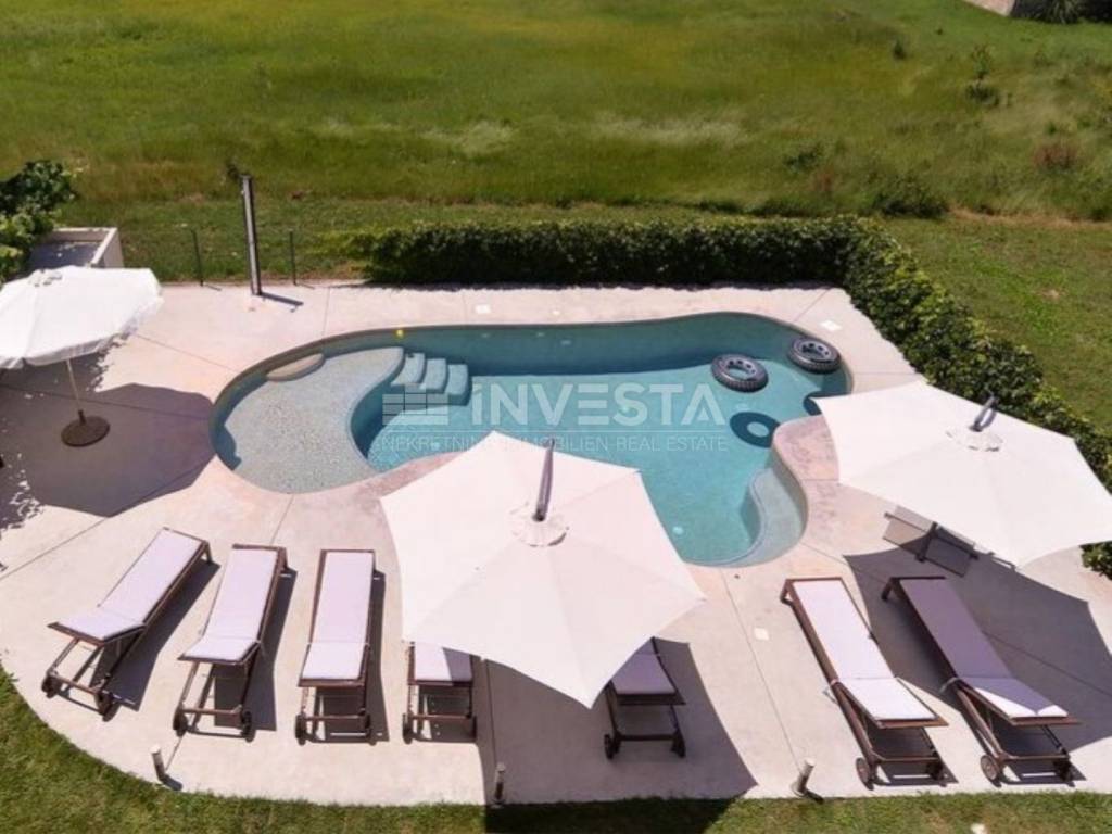 Prodaje se apartmanska kuća s 6 stambenih jedinica, garažom, bazenom i lijepom okućnicom, smještena na mirnoj lokaciji, svega 1 km od prekrasnih plaža i 2 km od centra Fažane.