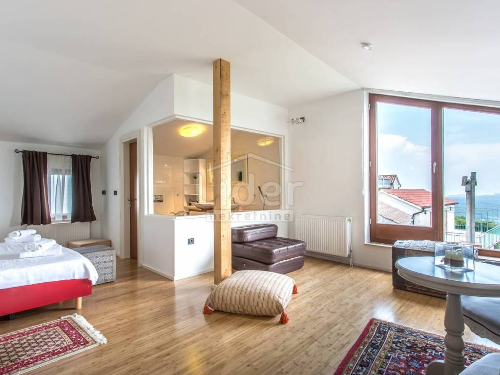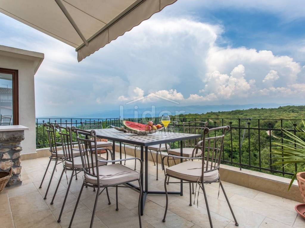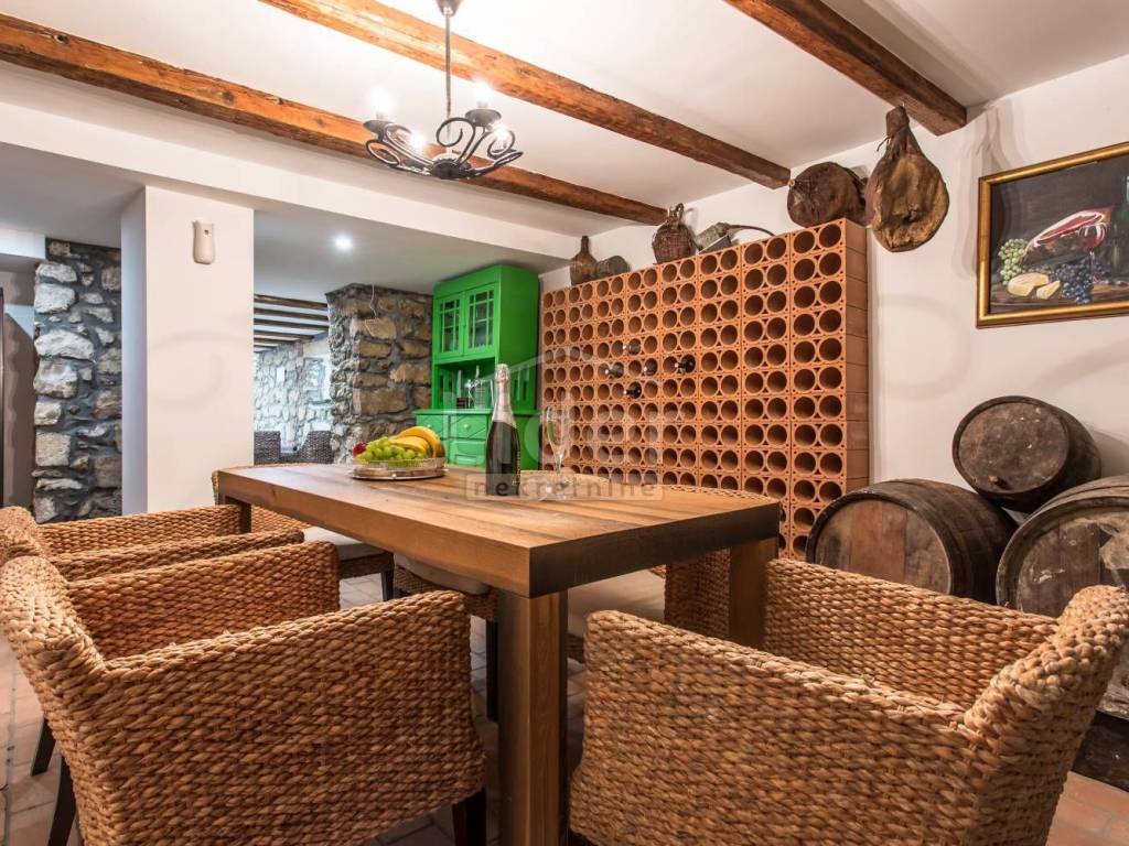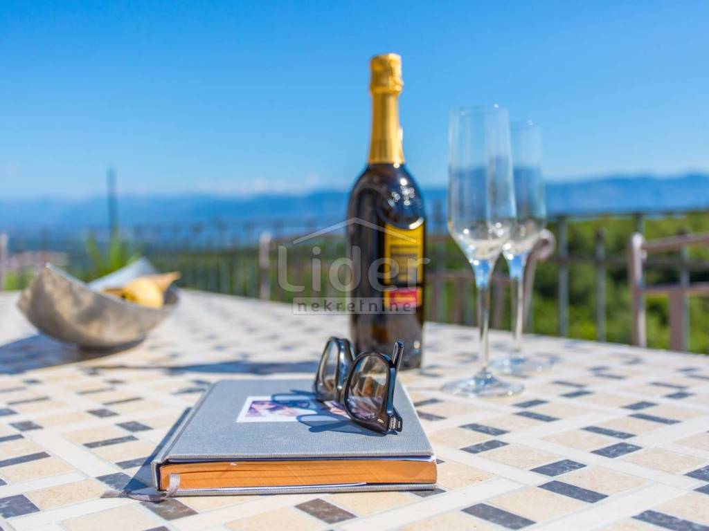 Vila se sastoji od suterena, prizemlja i prvog kata. U suterenu se nalazi prekrasni vinski podrum sa kaminom, prostor za druženje, sauna i unutarnji bazen. U prizemlju se nalaze dnevni boravak, kuhinja, blagovaona, jedna spavaća soba, kupaonica i terasa sa prekrasnim pogledom. Na prvom katu se nalaze 3 spavaće sobe, a svaka ima i vlastitu kupaonicu. Na uređenoj okućnici se nalazi bazen sa sunčalištem, dječje igralište i mjesto za roštilj.