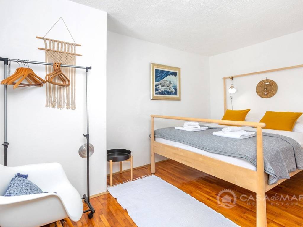 Unutarnje stepenice vode na kat gdje se nalaze dvije spavaće sobe. Ispred apartmana smještena je velika terasa koja pruža potpunu privatnost i prostor za opuštanje.