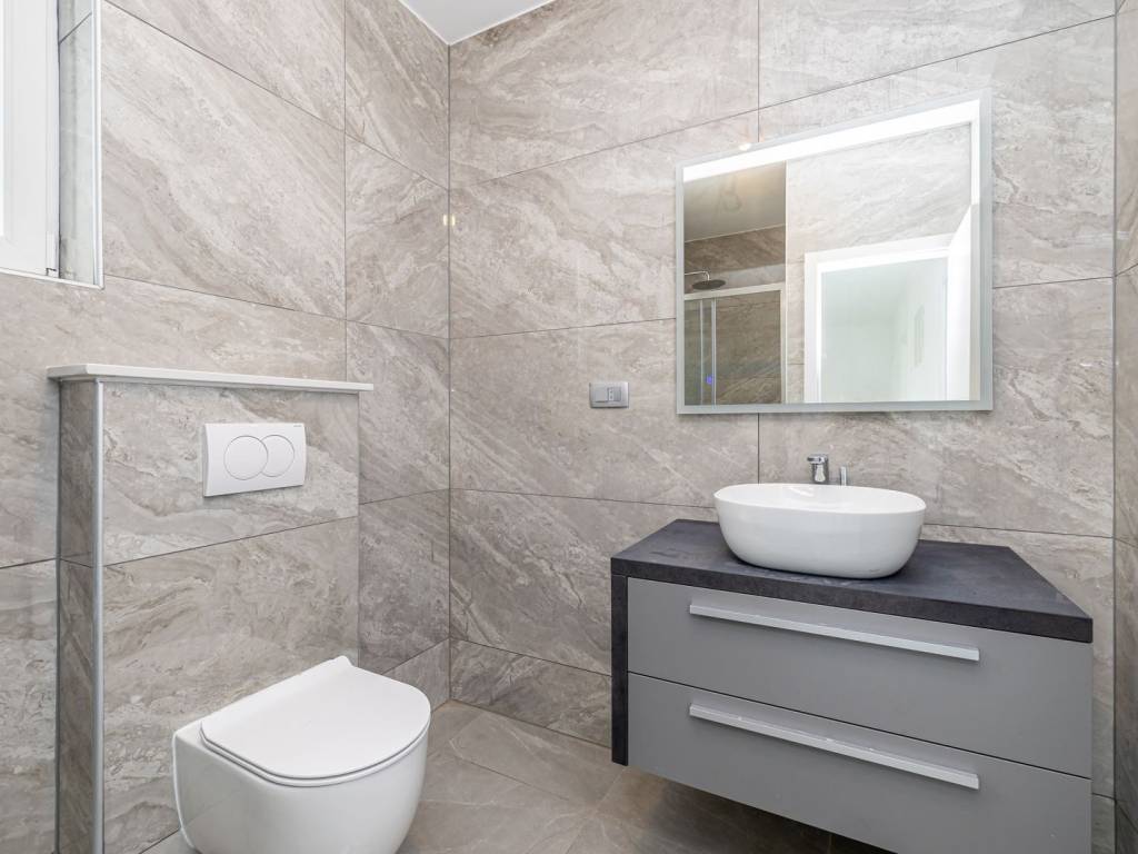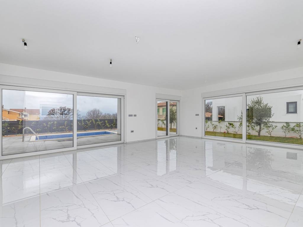 Prizemlje vile sastoji se od prostrane spavaće sobe s vlastitom kupaonicom, koja pruža maksimalnu udobnost. Osim toga, tu je dodatni WC za goste, strojarnica te otvoreni prostor koji objedinjuje dnevni boravak, kuhinju i blagovaonicu. Velike staklene stijene u dnevnom boravku omogućuju obilje prirodnog svjetla i pružaju prekrasan pogled na vanjski prostor. Iz ovog dijela kuće izlazi se na natkrivenu terasu, sunčalište i privatni bazen, idealan za opuštanje u toplim ljetnim mjesecima.