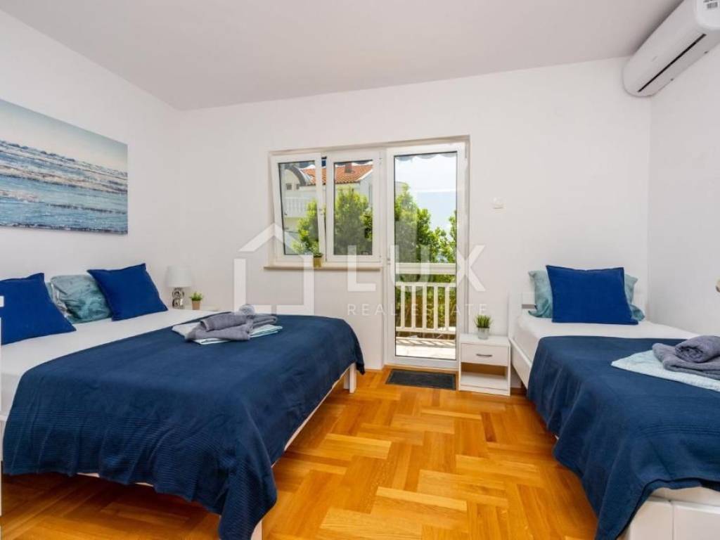 Kuća se sastoji od prizemlja i 3 kata. U prizemlju se nalazi apartman s dvije spavaće sobe, na prvom katu je apartman s tri spavaće sobe, dok su na drugom i trećem katu smještene dvije garsonijere i dva apartmana s jednom spavaćom sobom. Svi apartmani na gornjim etažama imaju terase s pogledom na more. Kuća se prodaje kompletno opremljena, te svi apartmani posjeduju kuhinju i renovirane kupaonice s perilicom za rublje.