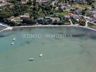 Prodajemo građevinsko zemljište na jedinstvenoj i izuzetno atraktivnoj lokaciji, u prvom redu do mora i odmah uz pješčanu plažu. Fantastičan pogled. Zemljište je pravokutnog oblika sa započetom gradnjom - izvedeni grubi radovi prizemlja. Objekt legaliziran, površine cca 11 x 12 m, priključak za vodu odmah uz objekt, struja u neposrednoj blizini, pristupom na javnu prometnicu. Vlasništvo uredno.