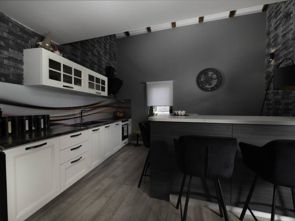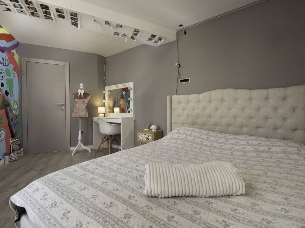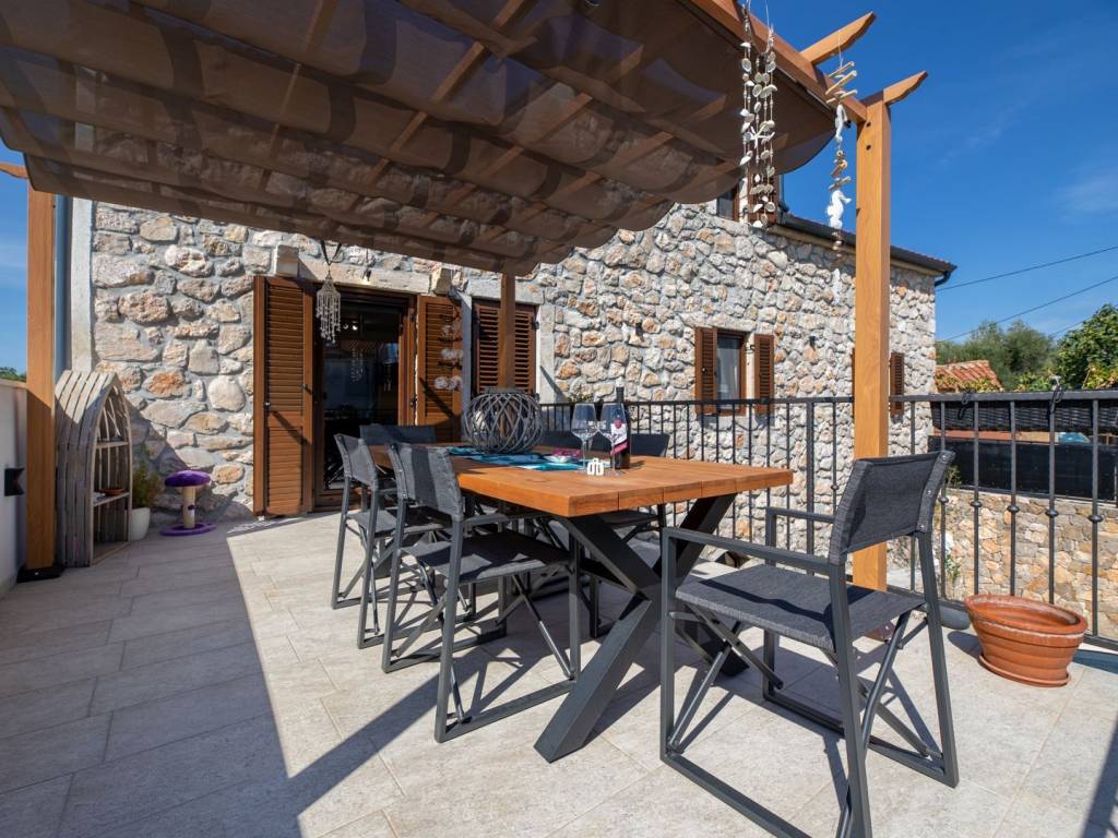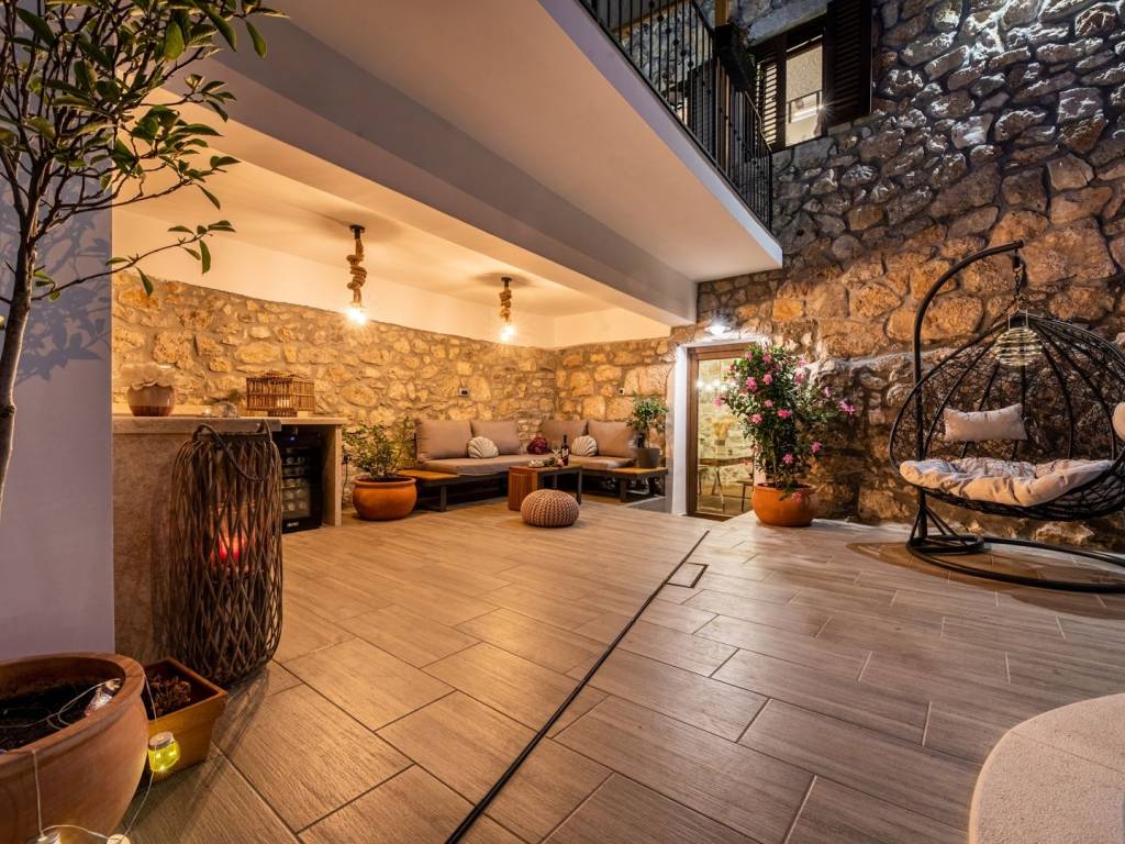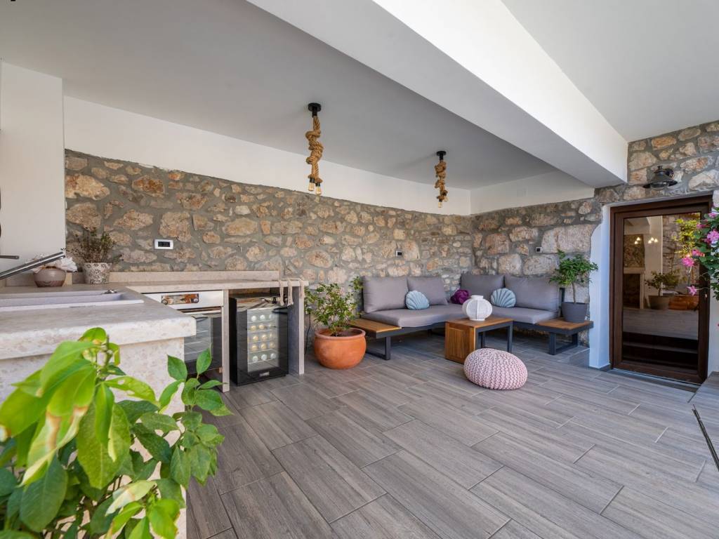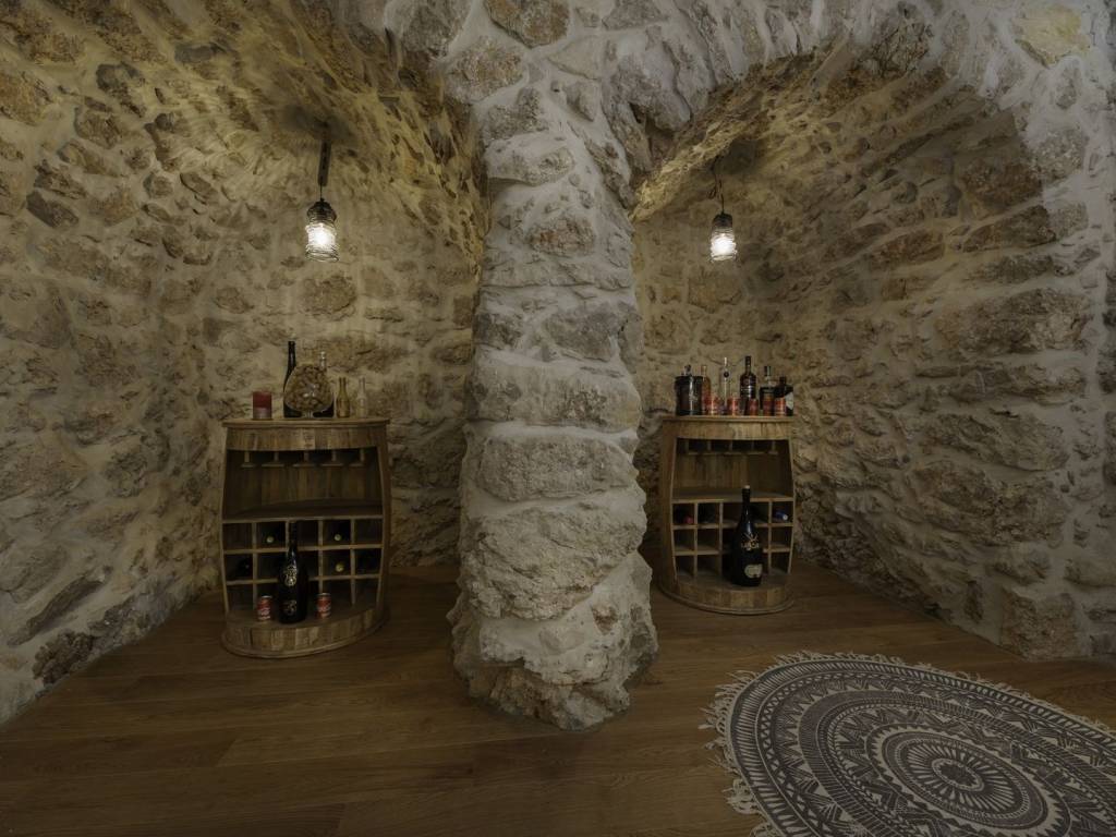 U prizemlju se nalazi rustikalna konoba, savršena za večeri u dobrom društvu uz biljar ili pikado, dok su sauna i teretana u susjednoj prostoriji osmišljene za potpuni wellness doživljaj. Na prvom katu, velika terasa vodi vas u prostrani dnevni boravak, moderno opremljenu kuhinju s blagovaonicom, elegantnu kupaonicu i jednu spavaću sobu. Unutarnje stepenice vode na drugi kat gdje se, uz galeriju, nalaze dodatni dnevni boravak, dvije spavaće sobe, kupaonica i prekrasna terasa s pogledom.