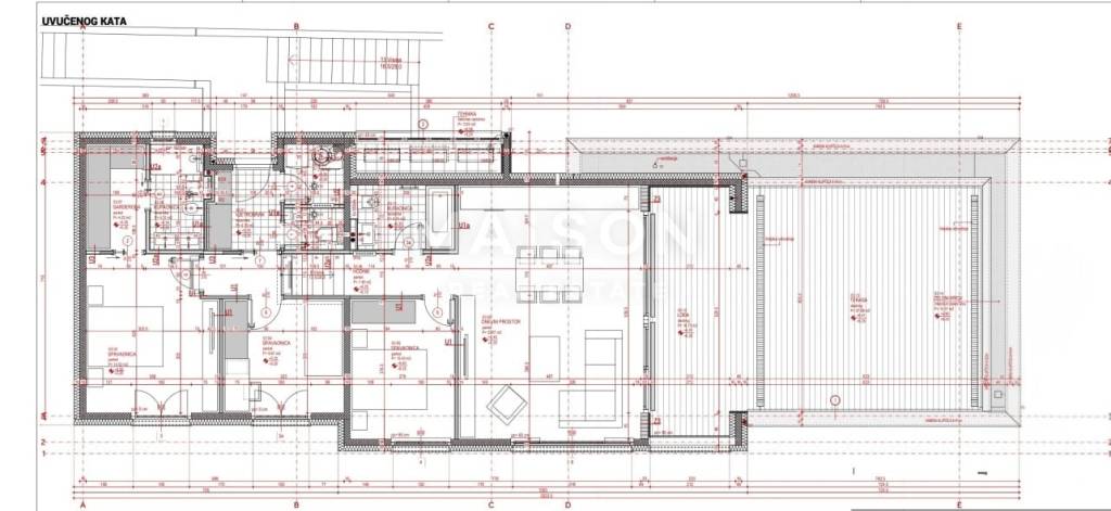 Raspored: ulazni hodnik, open space dnevni boravak s kuhinjom i blagovaonicom, tri spavaće sobe, dvije kupaonice, dodatni gostinjski toalet