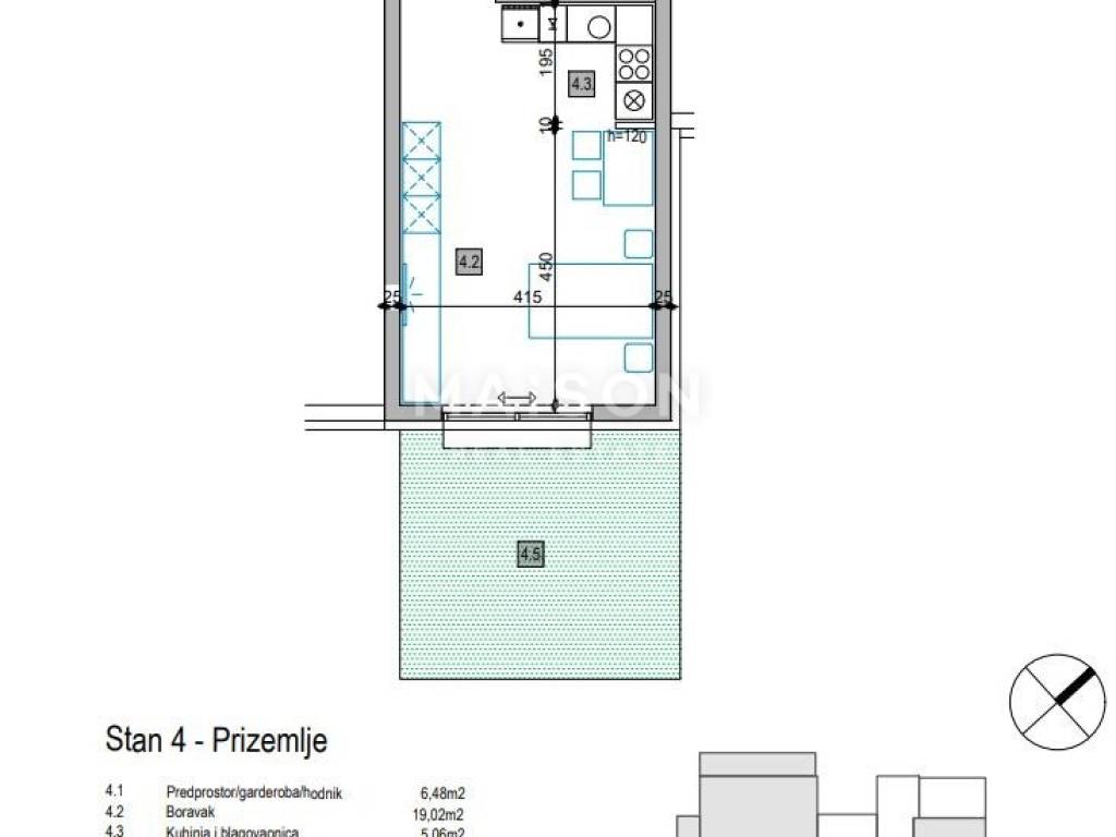 Prodaje se stan u izgradnji, garsonjera s vrtom.