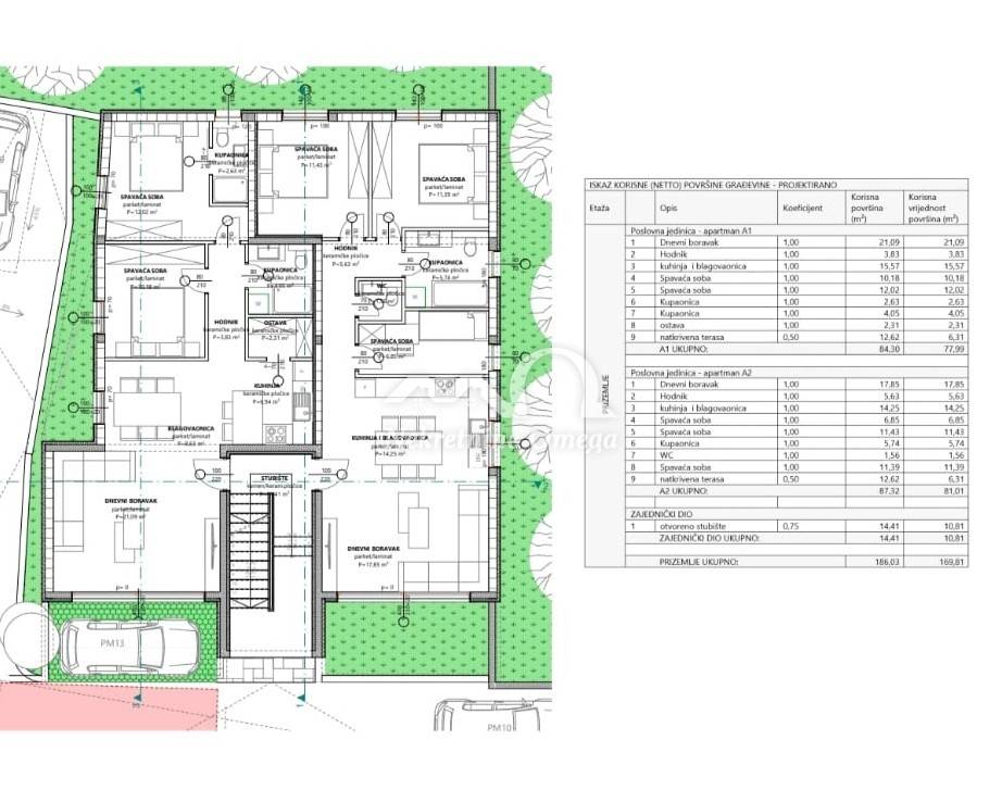 Na prodaju – Komforan dvosoban stan s vrtom i terasom u prizemlju Ukupna korisna površina: 84,30 m² | Dvije spavaće sobe | Vrt i terasa | Prizemlje