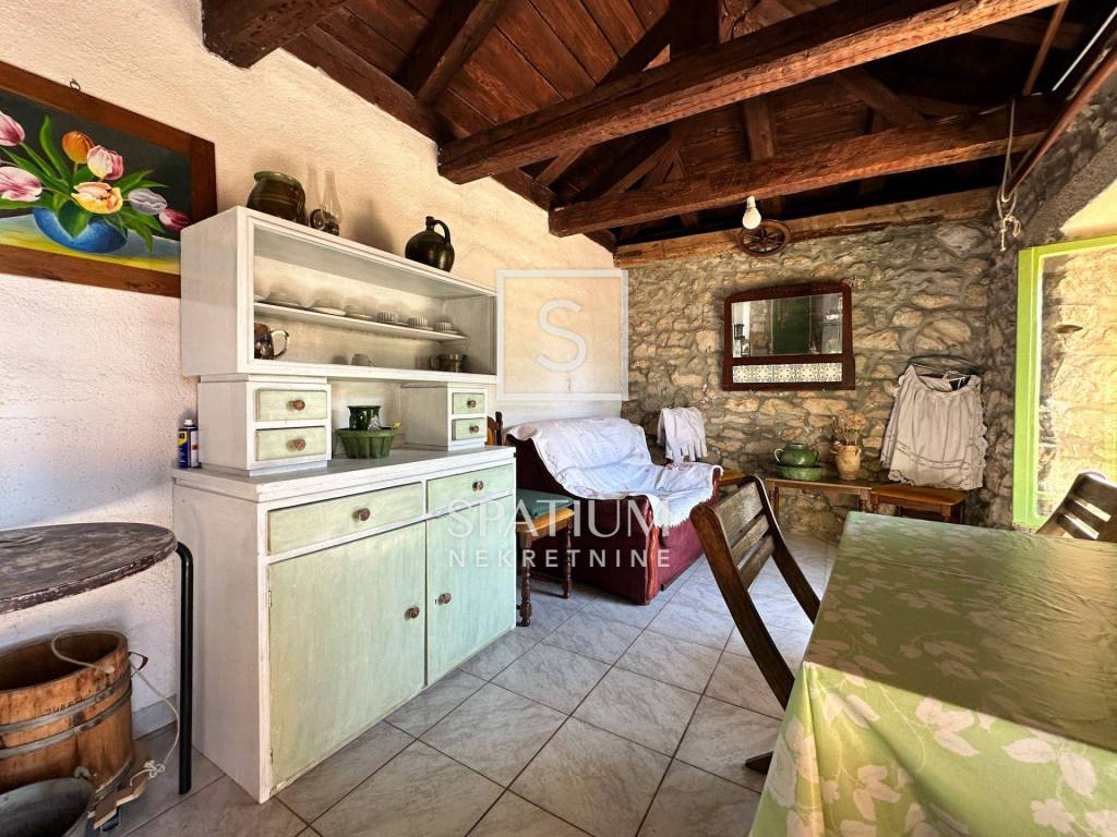 Uz kuću je naslonjena konoba sagrađena od kamena i drvenih greda, vanjska kuhinja te još jedna terasa koja je polu natkrivena, te pergola za dodatnu intimu i hlad na terasi.