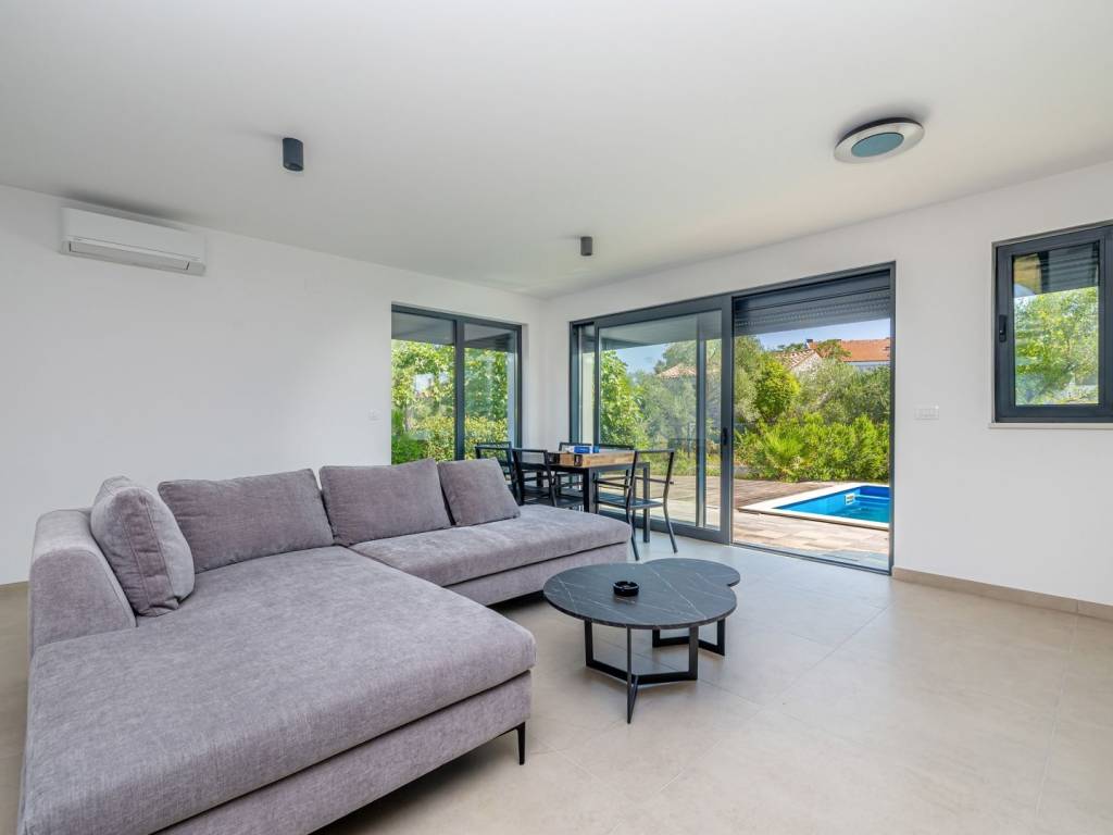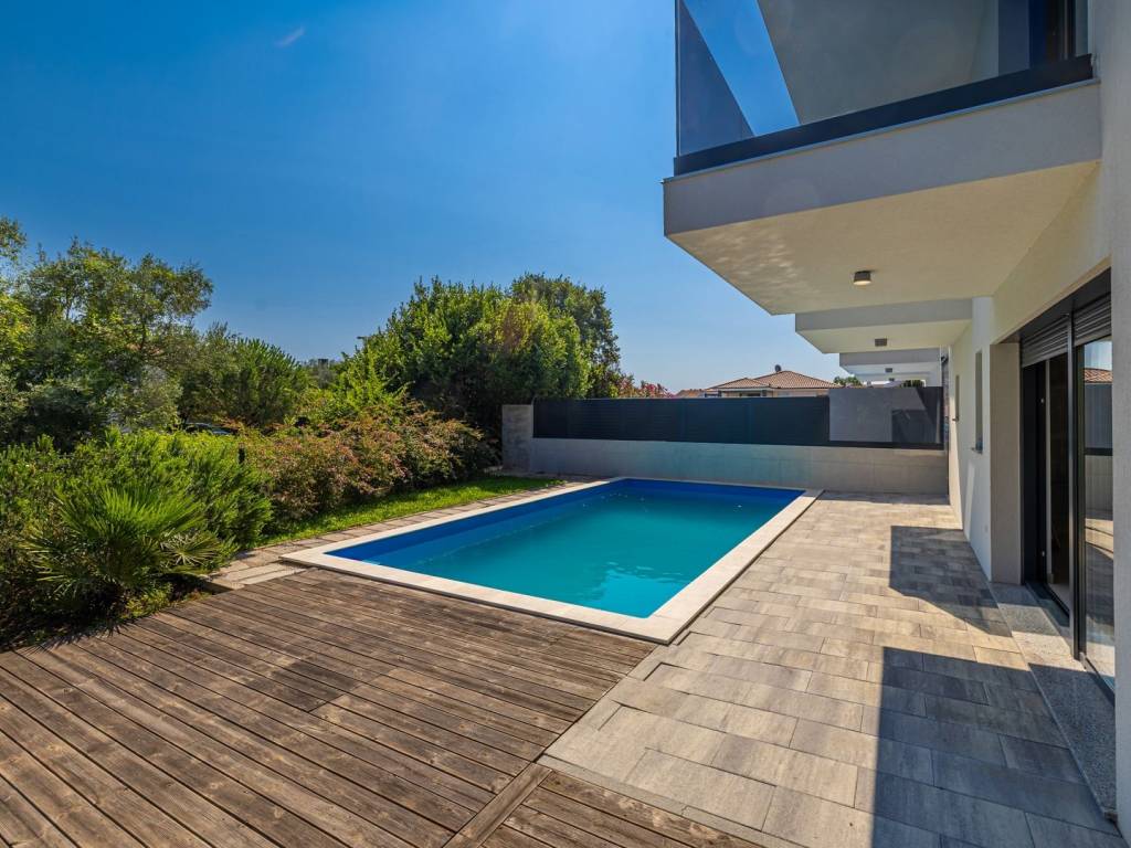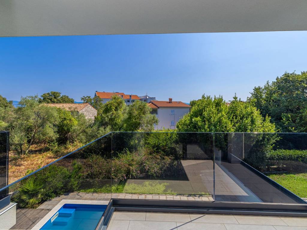 Vanjski prostor čini privatni bazen okružen uređenim vrtom, što stvara intimnu oazu mira. Apartmanu pripada i parkirno mjesto, dok vila ima svega četiri stambene jedinice, što osigurava mir i visoku razinu privatnosti.