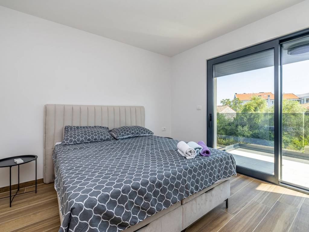 Apartman se prostire na dvije etaže te nudi prozračan i funkcionalan raspored. Sastoji se od tri prostrane spavaće sobe, svaka s vlastitom modernom kupaonicom, dodatnog WC-a te open space dnevnog boravka povezanog s kuhinjom i blagovaonicom. Posebnu vrijednost pružaju dva balkona, idealna za opuštanje i uživanje u mediteranskom ambijentu.