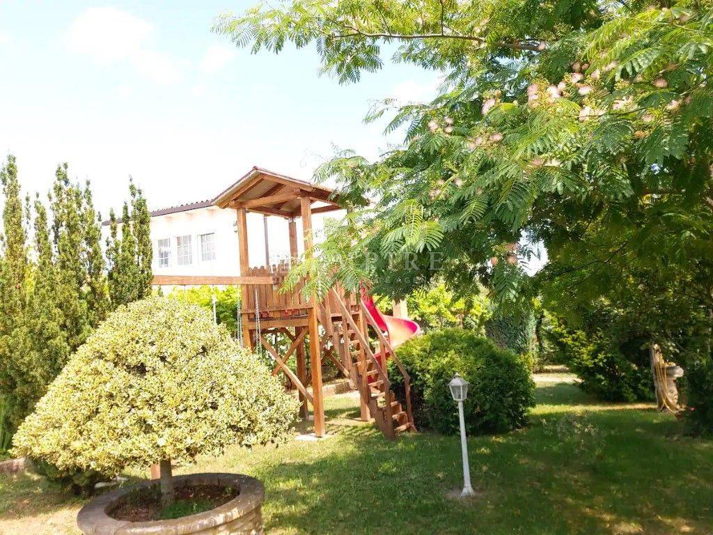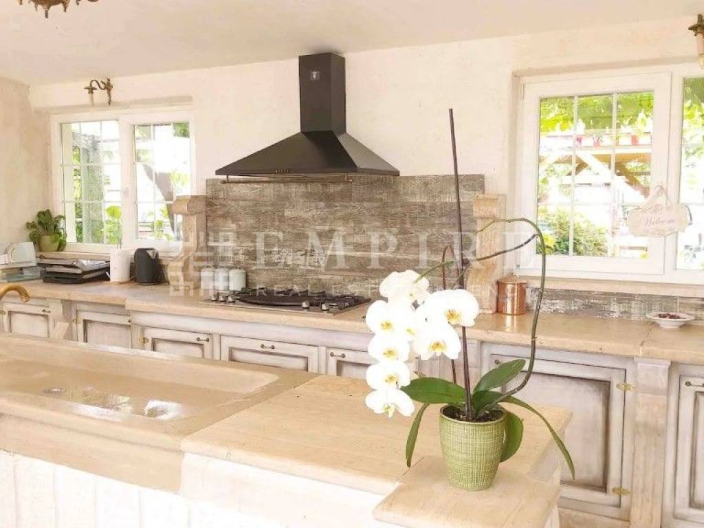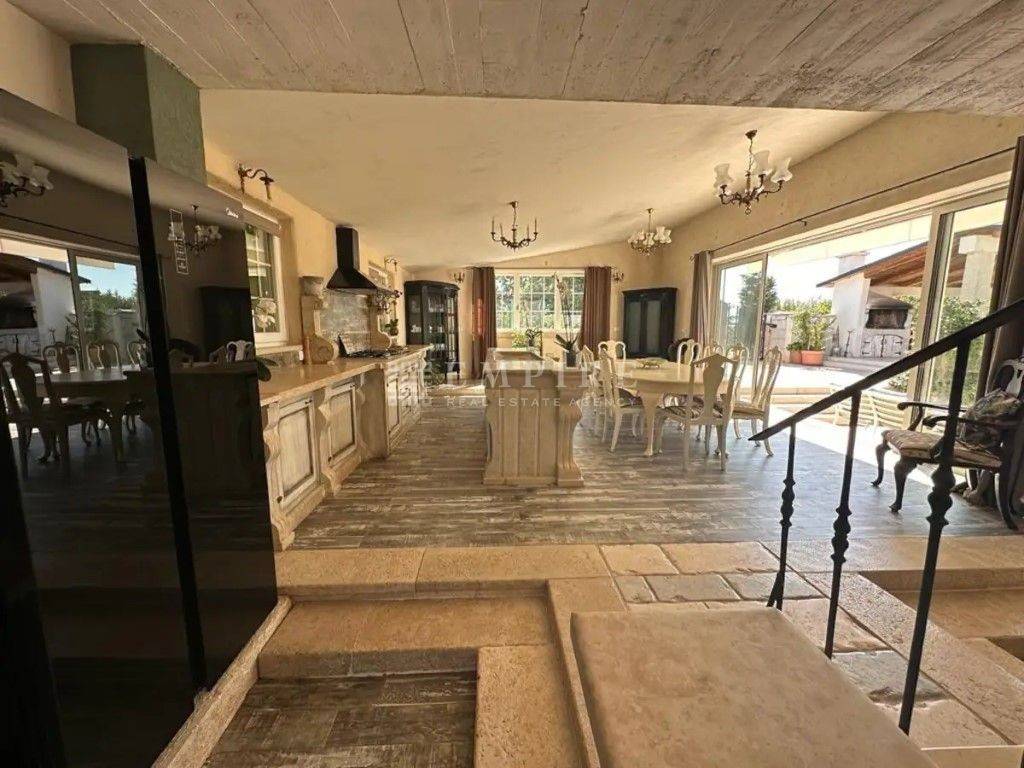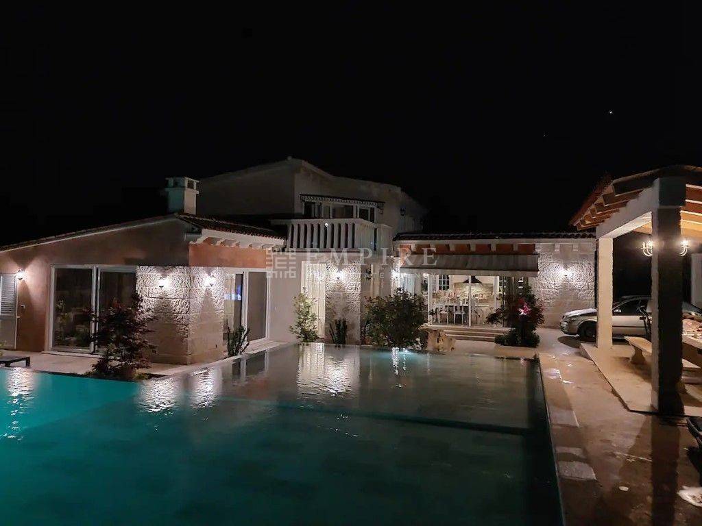 Luksuzna vila s bazenom od 150 m² Okružena stoljetnom šumom i smještena na brežuljkastom platou u blizini Pazina. Ovdje je manje zastupljena tipična istarska arhitektura, ali je primjetan osjetan utjecaj sjevera u gradnji. Kuće su ovdje većinom pokrivene kamenim kapcima koji su od vremena posijedjeli. U malom mjestu u srcu Istre, okružena prekrasnom prirodom, nalazi se luksuzna vila u stilu vintage kamena na površini od 1020 m². Površina vile je 260 m2 i uključuje četiri spavaće sobe, četiri kupaonice, veliki dnevni boravak i kuhinju. Jedan od sadržaja u spavaćoj sobi je i sauna. Podno grijanje je dostupno u svim sobama. Ova zanimljiva vila sa čvrstim kamenim karakterom ima bazen sa slanom vodom do 150 m² na tri razine (25 cm, 45 cm, 140 cm) i dvije vanjske kuhinje na drva i plin. PRILIKA!!!