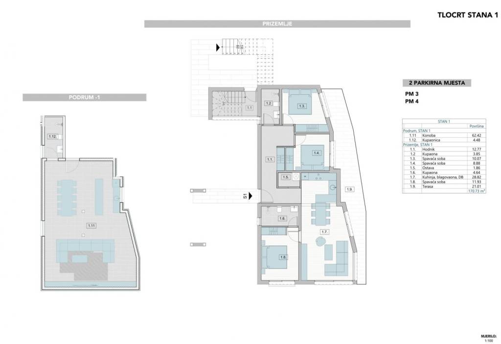 Posebna vrijednost nekretnine je pripadajući prostor u podrumu površine 69 m², pogodan za razne namjene, kao i dva osigurana parkirna mjesta.