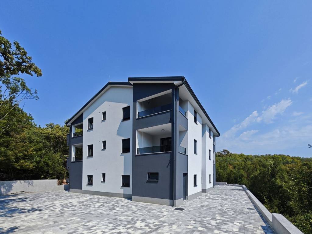 Apartman se sastoji od ulaznog hodnika, prostranog dnevnog boravka povezanog s blagovaonicom i kuhinjom, dvije spavaće sobe i kupaonice. Iz blagovaonice i jedne spavaće sobe izlazi se na dvije natkrivene terase s prekrasnim pogledom na zelenilo, što prostoru daje poseban osjećaj privatnosti i mira.
