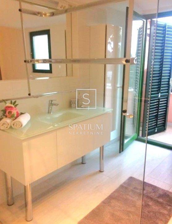 Uz bazen nalazi se sunčalište, terasa s roštiljem i vrtna kućica koja služi kao spremište i vešeraj.