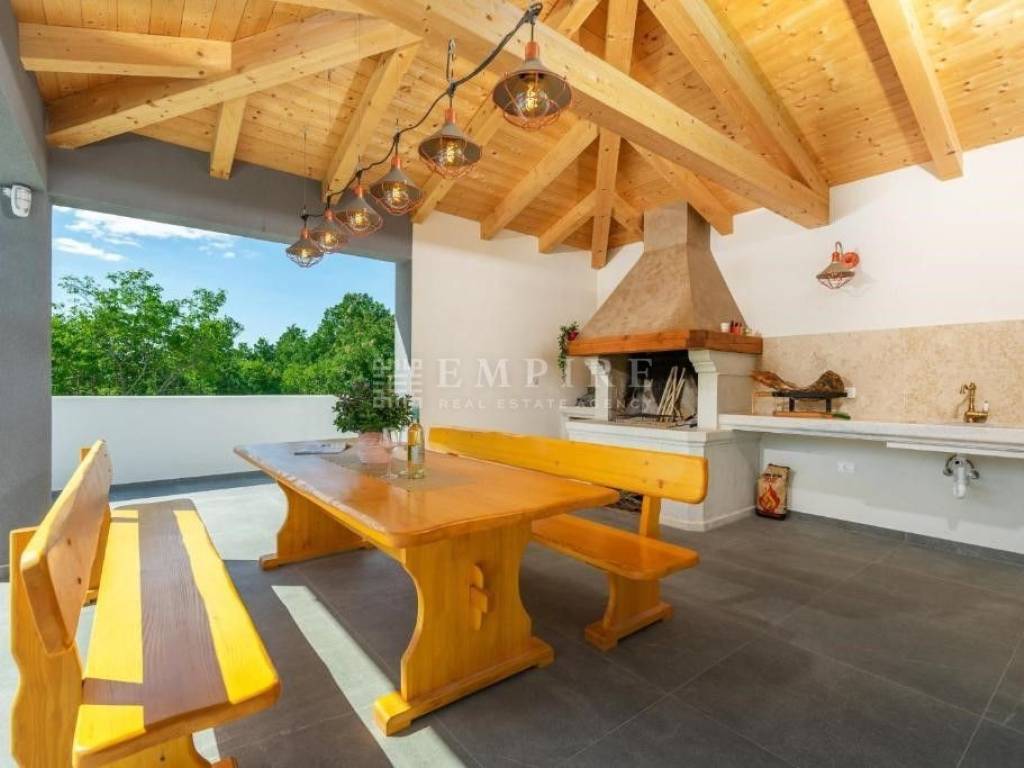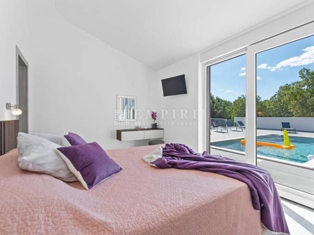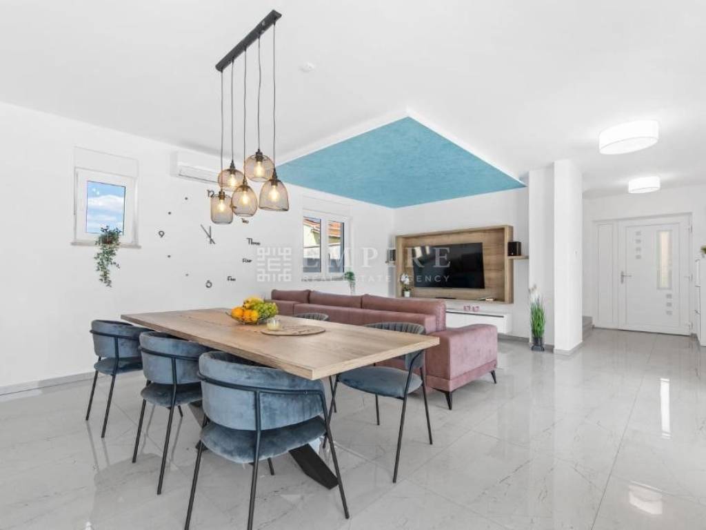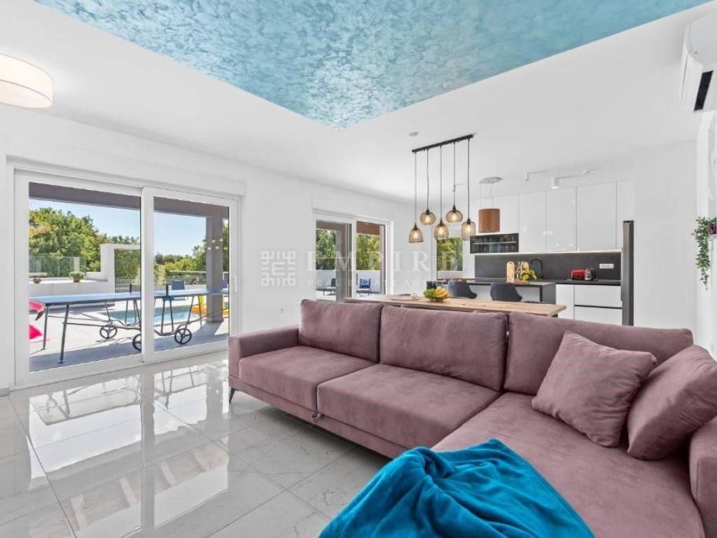 Villa se prodaje potpuno nova, nekorištena, opremljena i namještena. Villa ima ukupnu površinu od 177 četvonih metara a sastoji se od 3 spavaće sobe sa kupaonama, velikim dnevnim prostorom koji se sastoji od kuhinje, blagovaone i dnevnog boravka, dodatnog toaleta i velike natkrivene terase sa ljetnom kuhinjom.