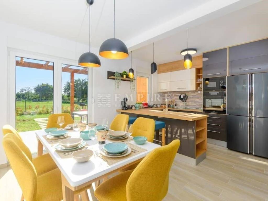 Radi se o montažnoj kući vrhunske kvalitete opremljena podnim grijanjem kroz cijelu kuću, solarnim panelima i 4 klima uređaja.