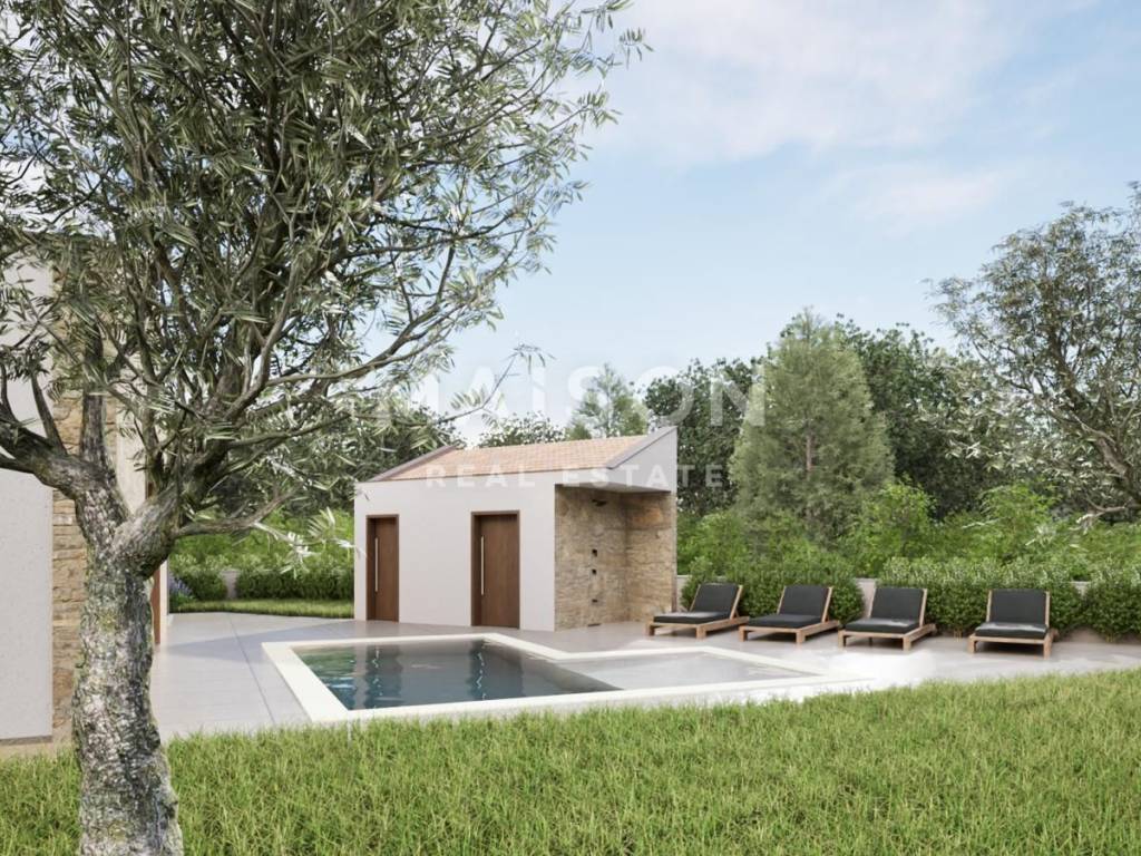 Predstavljamo Vam vilu u izgradnji u sklopu ekskluzivnog projekta u Barbanu – modernu samostojeću prizemnicu površine 102 m², s privatnim bazenom i uređenom okućnicom. Nekretnina je dio manjeg kompleksa od tri kuće, projektiranog s naglaskom na visoku kvalitetu gradnje, suvremeni dizajn i dugoročnu udobnost stanovanja.