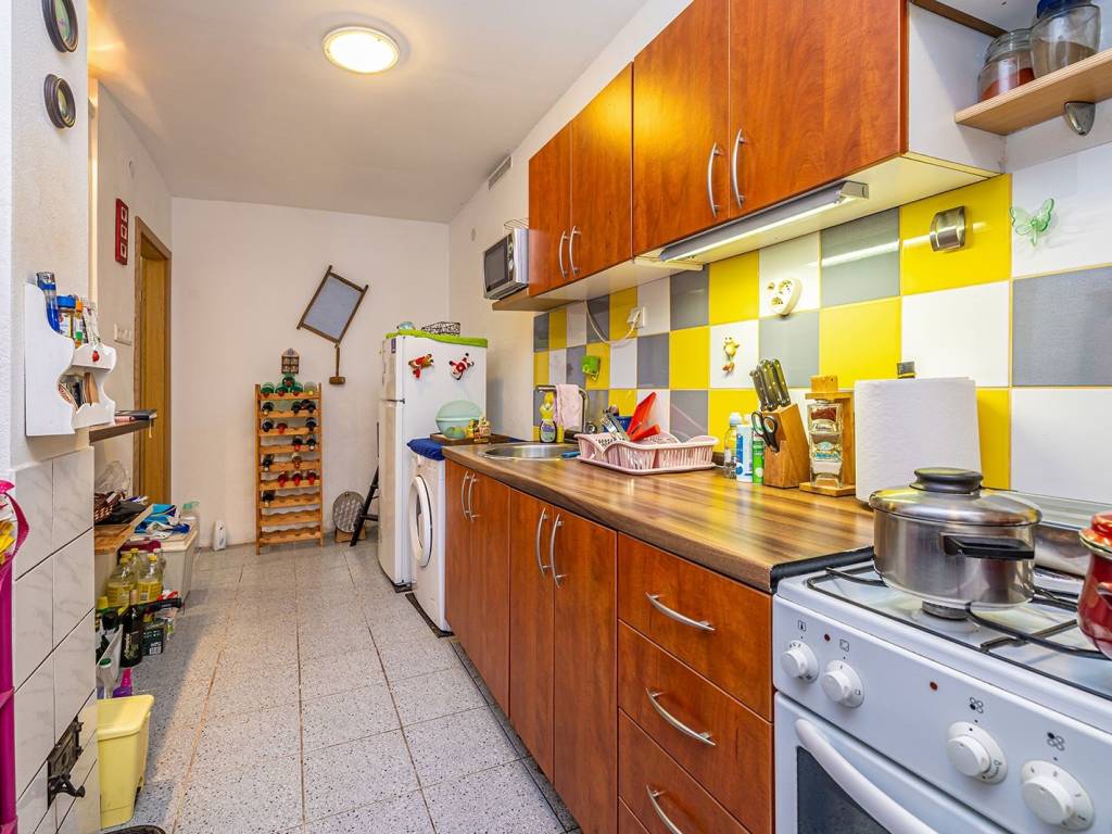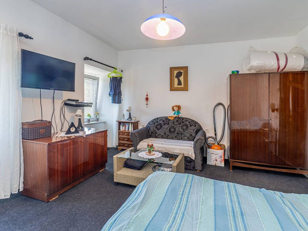 Na prvom katu nalazi se potpuno funkcionalan stambeni prostor koji uključuje kuhinju, blagovaonicu i dnevni boravak u otvorenom konceptu, spavaću sobu i kupaonicu. Prostor je odmah useljiv i ne zahtijeva dodatna ulaganja.