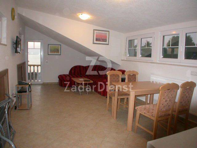 U prizemlju se nalazi prostrani stan (cca. 100 m2) sa dvije sobe, dnevnim boravkom, kuhinjom i blagovaonicom, 2 kupaonice, odvojenim wc-om, praonicom, spremištem i hodnicima. Dnevni boravak nadopunjuje uredska soba (sa pristupom stubištu) i mala pomoćna prostorija. Također u prizemlju sa strane, nalazi se mali apartman za goste (cca. 19 m²) sa vlastitim kupatilom. Po mogućnosti se ovaj apartman može spojiti sa velikim stanom jer su povezani vratima.