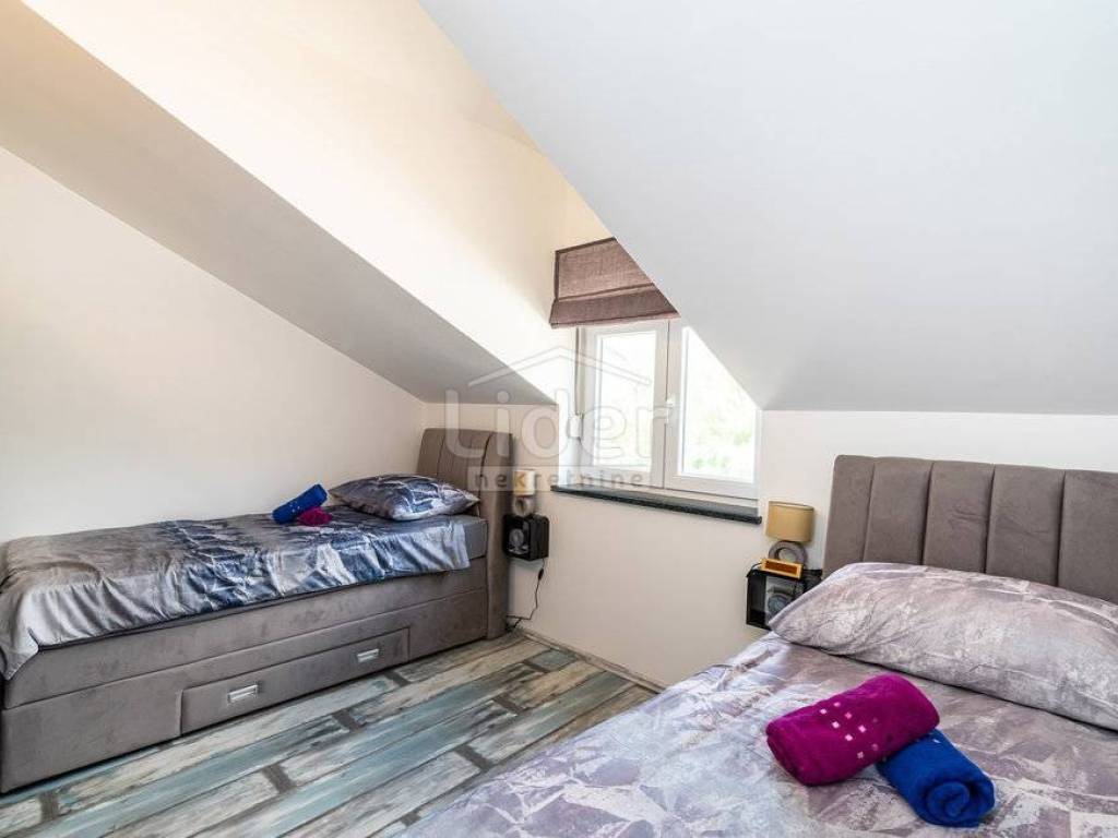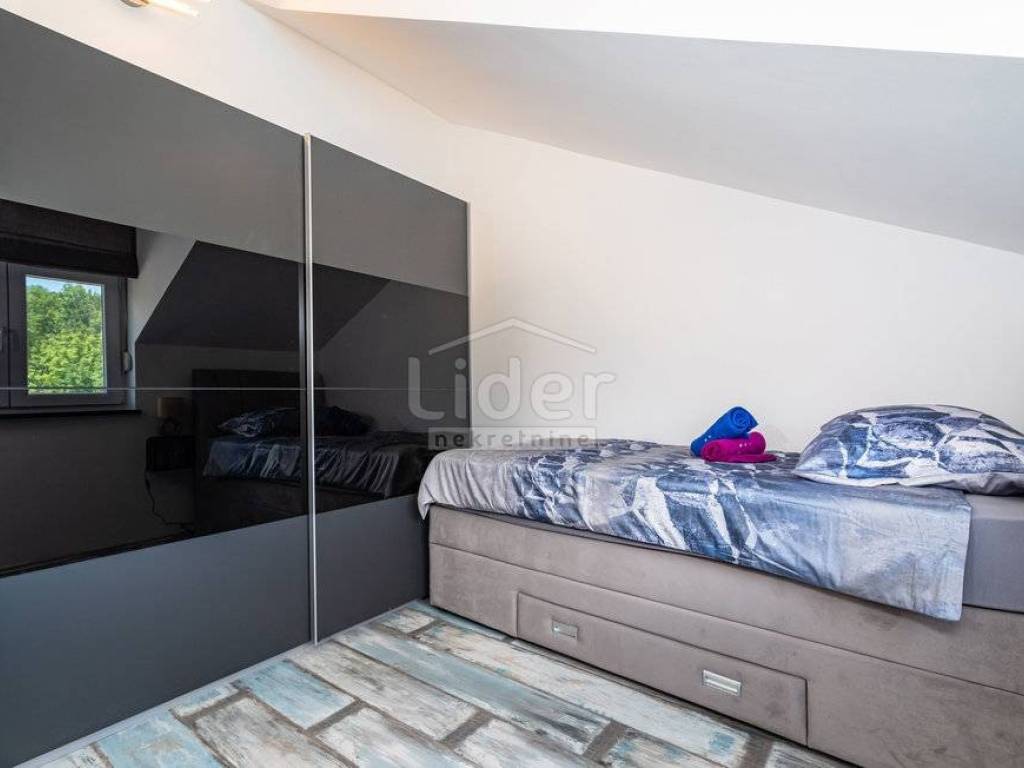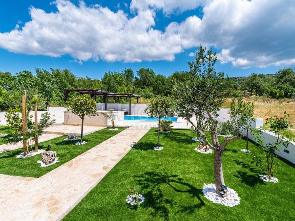 Na okućnici je lijepo urešeni vrt sa bazenom, sunčalištem, roštiljem, te parking za više automobila.