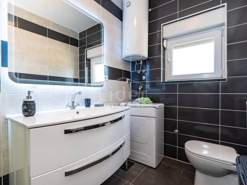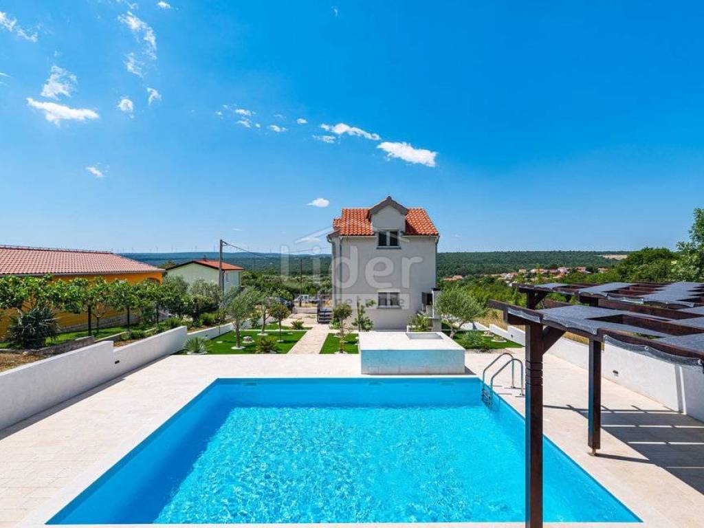 U Kruševu na Karinskom i Novigradskom moru prodajemo novu kuću sa bazenom i lijepo uređenom okućnicom. Kuća je udaljena samo 350m od mora i plaže.