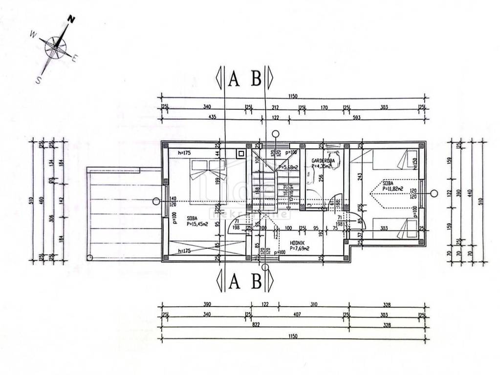 Kuća se sastoji od prizemlja i visokog potkrovlja. Na prizemlju se nalaze dnevni boravak, kuhinja, kupaonica, spremište, hodnik, stubište za gore te 12m2 velika terasa sa pergolom, a na viskom potkrovlju su dvije spavaće sobe, garderoba i hodnik.