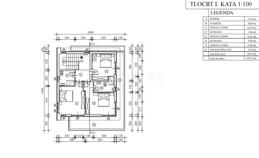 Kat: Stubište, tri spavaće sobe, dvije kupaonice