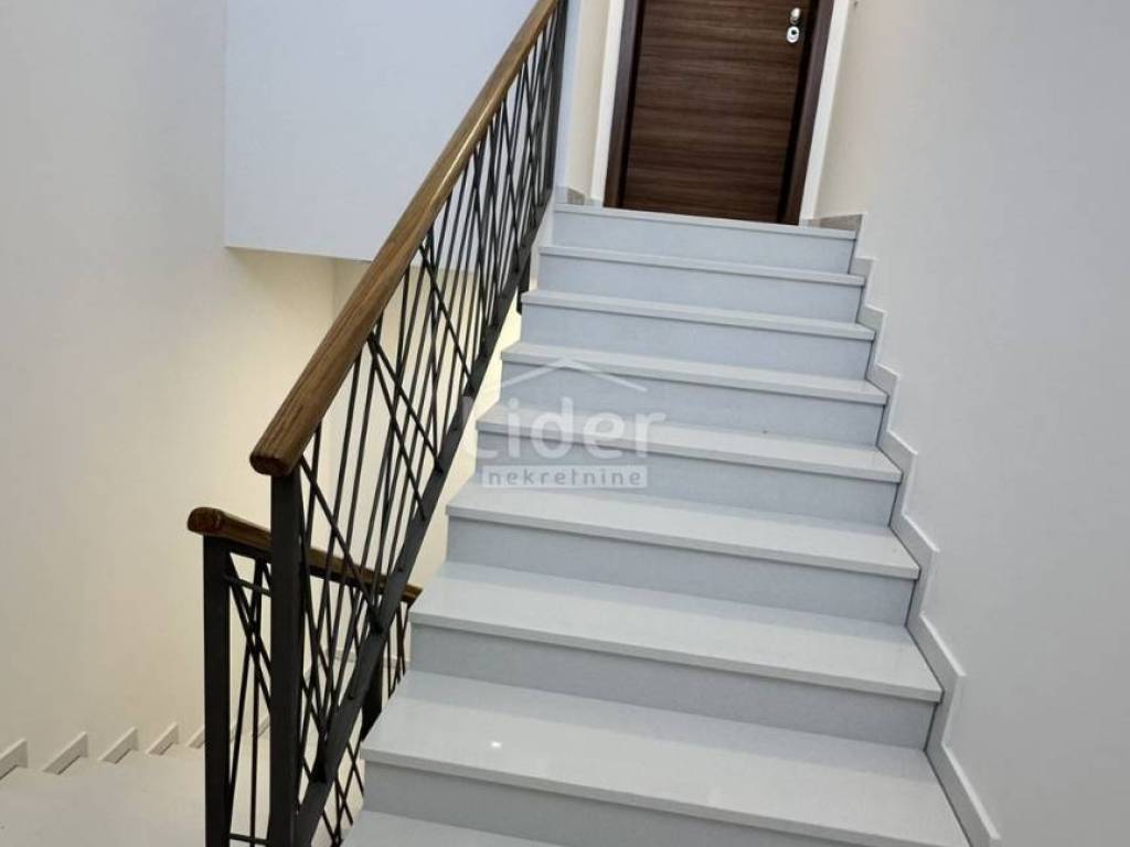 Armirano betonska konstrukcija, zidovi - Porotherm 25 Profi, pregradni zidovi - Porotherm 10 Profi, ravni krov 15 cm XPS, vanjski zidovi 8 cm EPS, završna obrada akril žbuka, keramika, staklena ograda na terasi na ALU nosačima, stolarija unutarnja jednokrilna drvena vrata hrast natur, protuprovalna i protupožarna ulazna vrata, vanjska PVC više komorna stolarija 3 stakla, boja izvana antracit, iznutra bijela, rolo komarnici, električno pokretna roleta na podizno kliznim stijenama, unutarnje kamene klupice, vanjske antracit klupice s brtvom, stubište popločano prirodnim kamenom, Inox ograda, sobe podna obloga troslojni hrastov parket, klima jedinica u svim sobama i dnevnom boravku, kupaonice podna i zidna obloga keramičke pločice 60 cm x 120 cm, Hansgrohe podžbukni tuš sistem + armature, premium umivaonik, GEBERIT ugradbeni vodokotlić + rimless WC školjka sa soft close daskom, radijator ljestve, zatravljeni okoliš sa zasađenim stablima agruma, kamenom popločan parking, priprema instalacije za punjače za električna vozila, video portafon, priprema za TV u sobama...