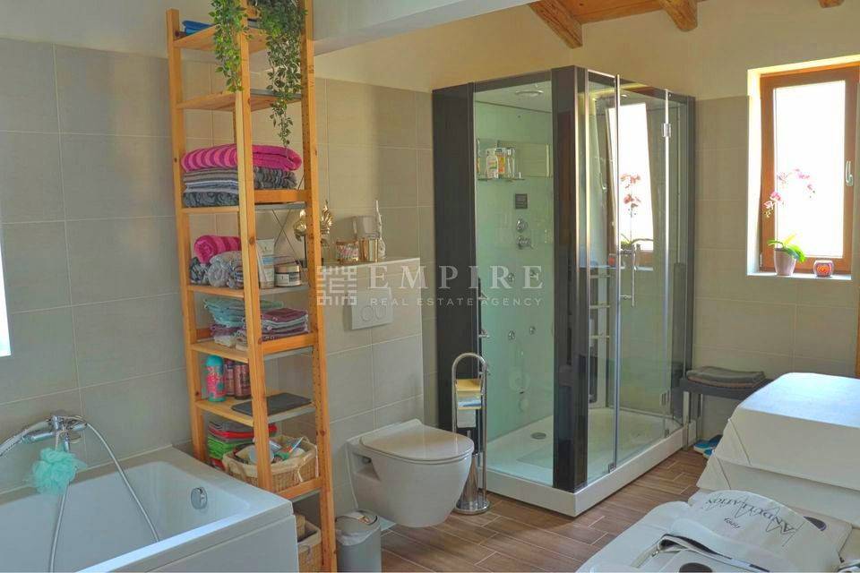 Smještena u mirnom naselju, ova izuzetna istarska kamena vila s bazenom i prekrasnim otvorenim pogledom na prirodu pruža savršeno mjesto za opuštanje i uživanje. Vila se prostire na dvije etaže s ukupnom površinom od 240 m², kombinirajući tradicionalni istarski stil s modernom udobnošću.