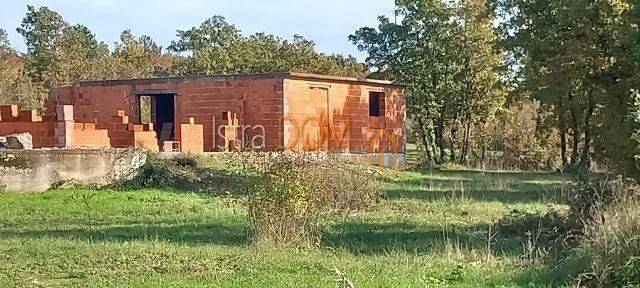 Gađevinska parcela sa započetom gradnjom kuće od 200 m2, prizemlje + potkrovlje, površina parcele je 2046 m2 , parcela je ravnog i pravilnog oblika.